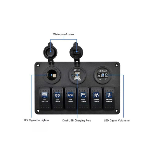Descriere Panou întrerupătoare 12V voltmetru, USB, priză