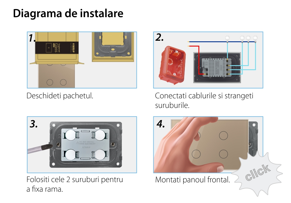 Recenzii Produse Panou intrerupator cvadruplu touch Livolo sticla,