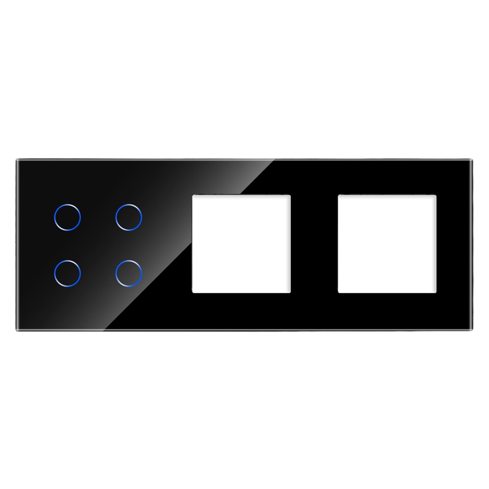 Panou Intrerupator Cvadruplu cu Touch si 2 Prize Simple Din Sticla LUXION SmartElectro IntelligentHouse