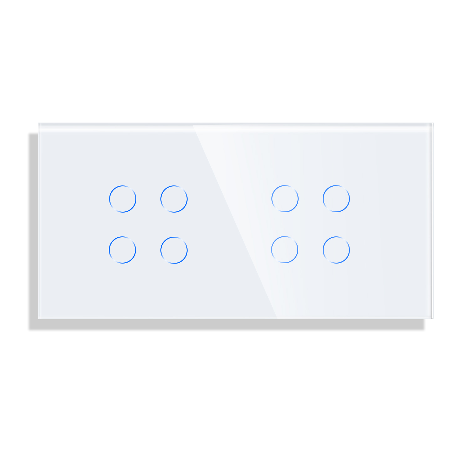 Panou intrerupator tactil cvadruplu + cvadruplu din sticla LUXION, compatibil cu modulele Luxion. Produsele LUXION se caracterizeaza printr-un design compact, elegant si minimalist. Sunt practice, realizate din materiale de calitate si durabile si ofera utilizare si confort casei tale.