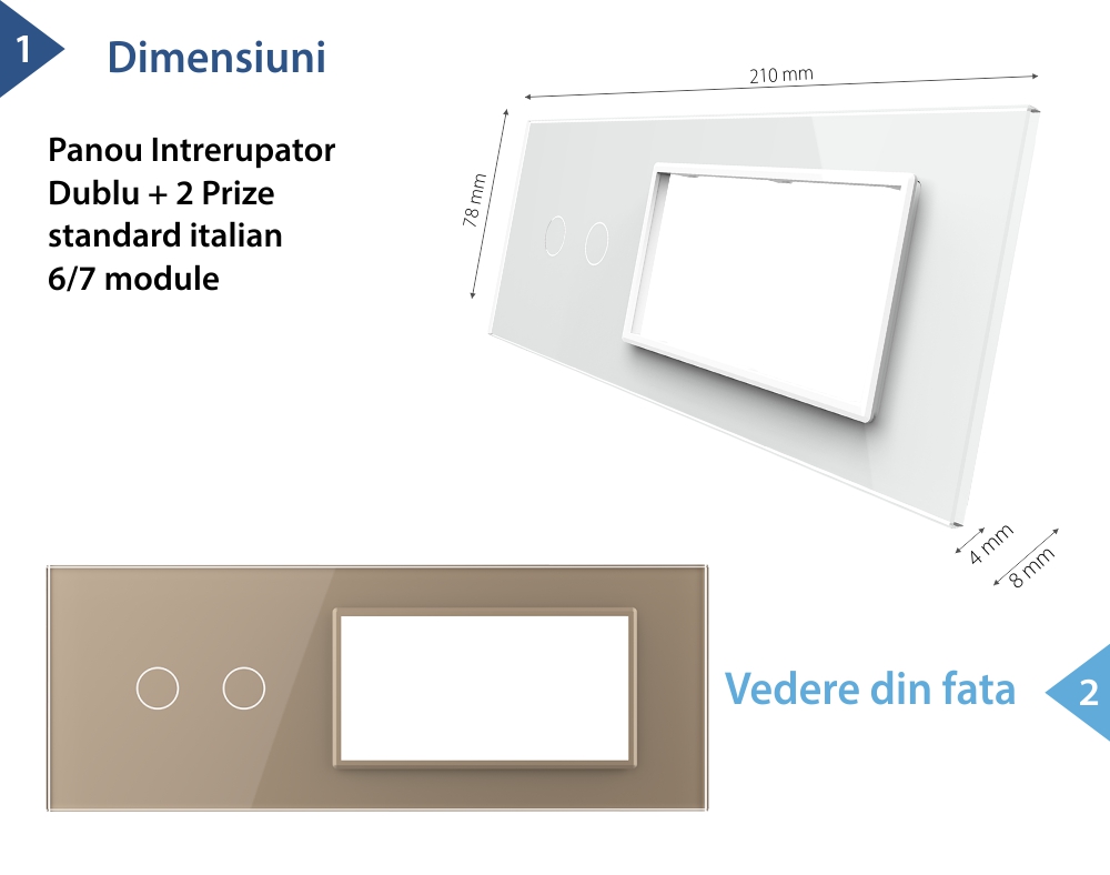 Panou Intrerupator Dublu cu 2 Prize LIVOLO din Sticla, Standard Italian - 6/7M SmartElectro IntelligentHouse