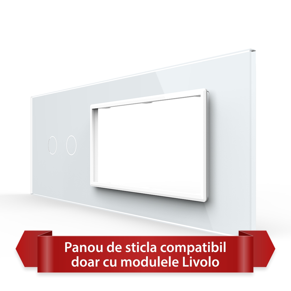 Panou Intrerupator Dublu cu 2 Prize LIVOLO din Sticla, Standard Italian - 6/7M SmartElectro IntelligentHouse