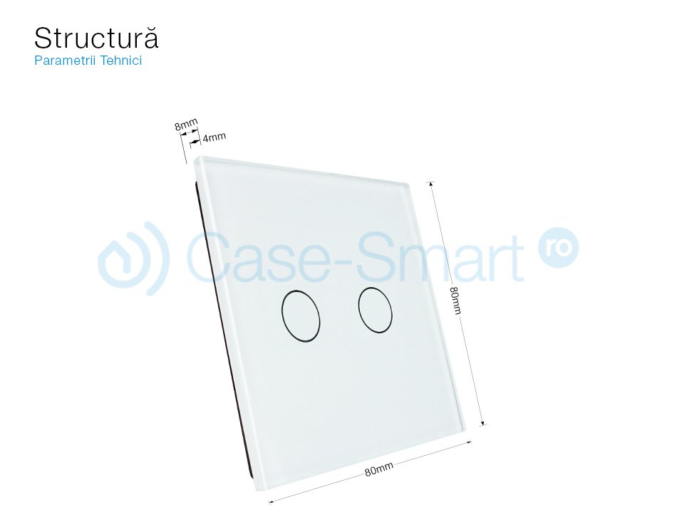 Specificatii Panou intrerupator dublu touch Livolo sticla