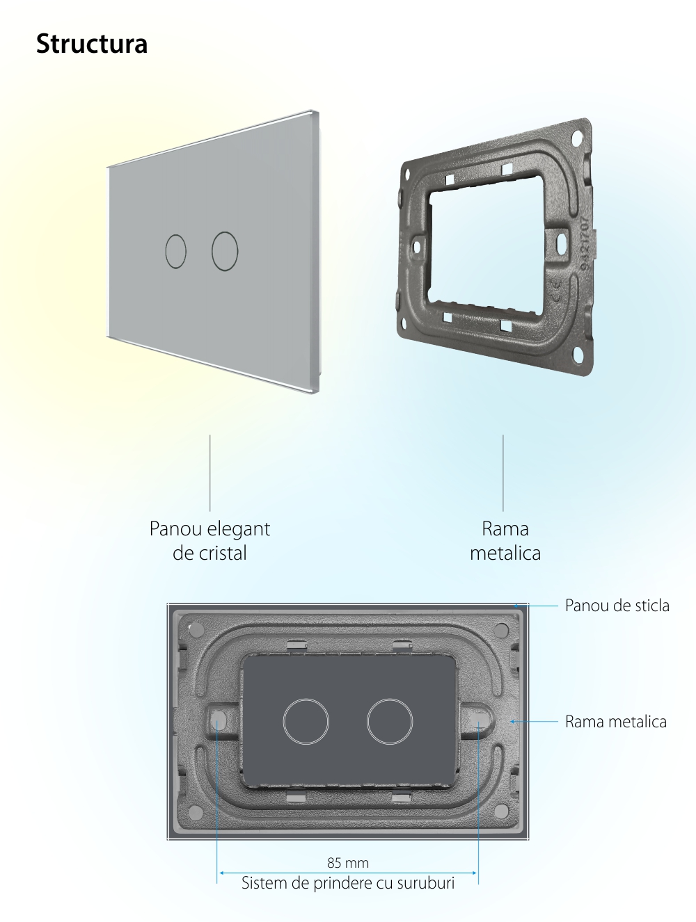 Specificatii Panou Intrerupator Dublu Touch LIVOLO Din