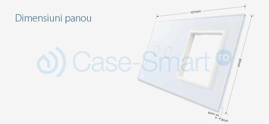 Panou intrerupator dublu cu touch si priza simpla Livolo, din sticla pe care se poate monta orice model de intrerupator Livolo si o priza simpla sau media.