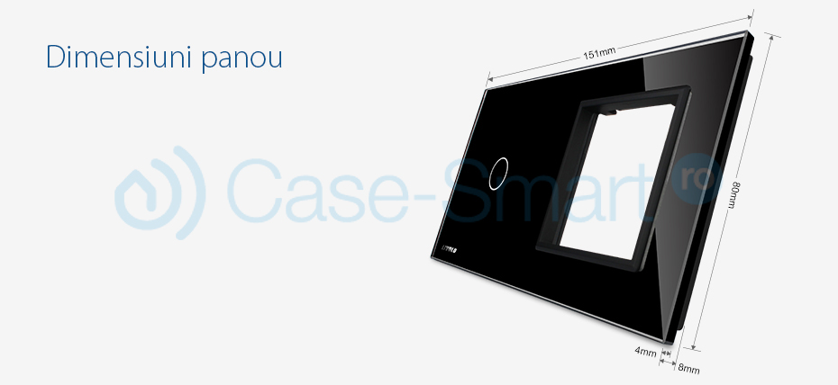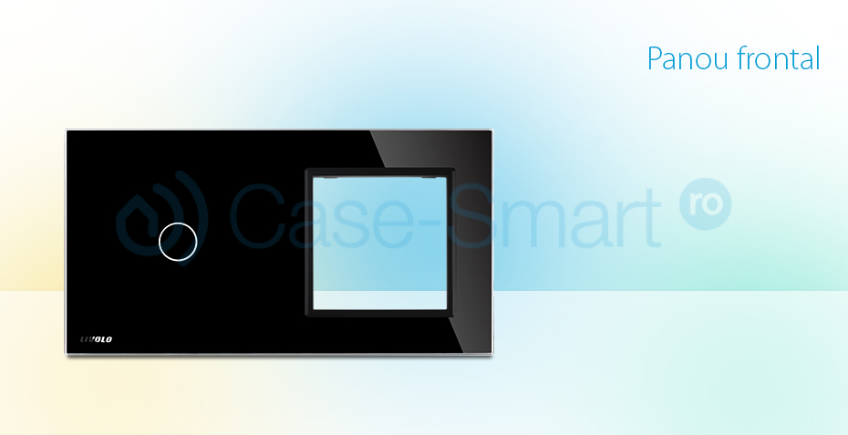 Panou intrerupator simplu cu touch Livolo si priza cu rama din sticla, se poate monta orice intrerupator: cap scara, cu variator, cu timer, wireless.