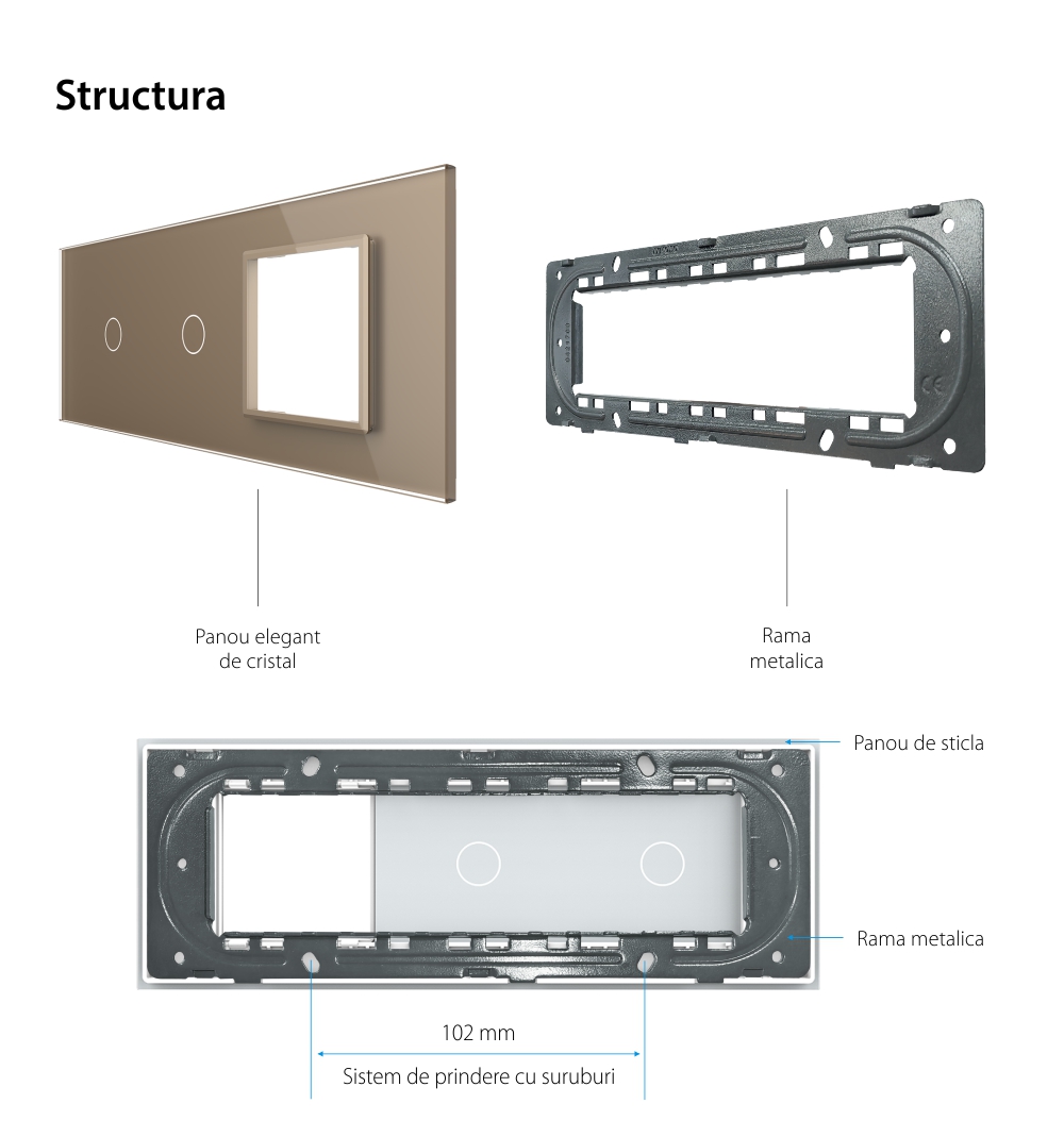 Panou Intrerupator Simplu + Simplu cu Priza LIVOLO din Sticla, Standard Italian - 6/7M SmartElectro IntelligentHouse