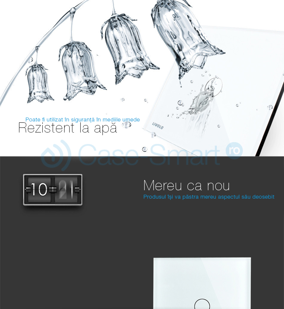 Recenzii Produse Panou intrerupator simplu+simplu+dublu touch LIVOLO sticla