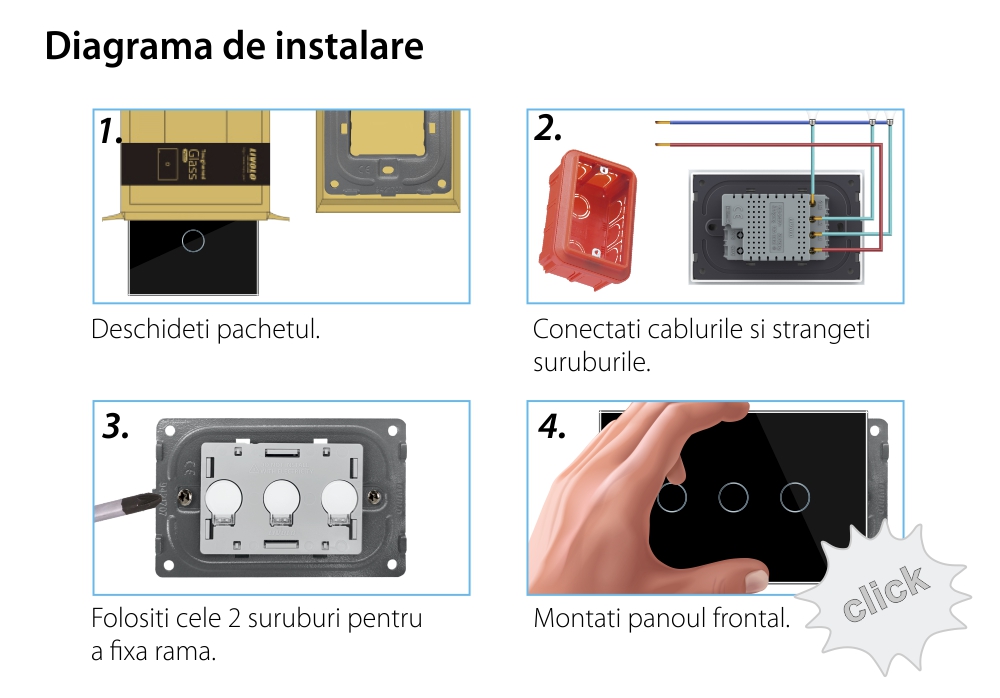 Recenzii Produse Panou intrerupator triplu touch Livolo sticla,