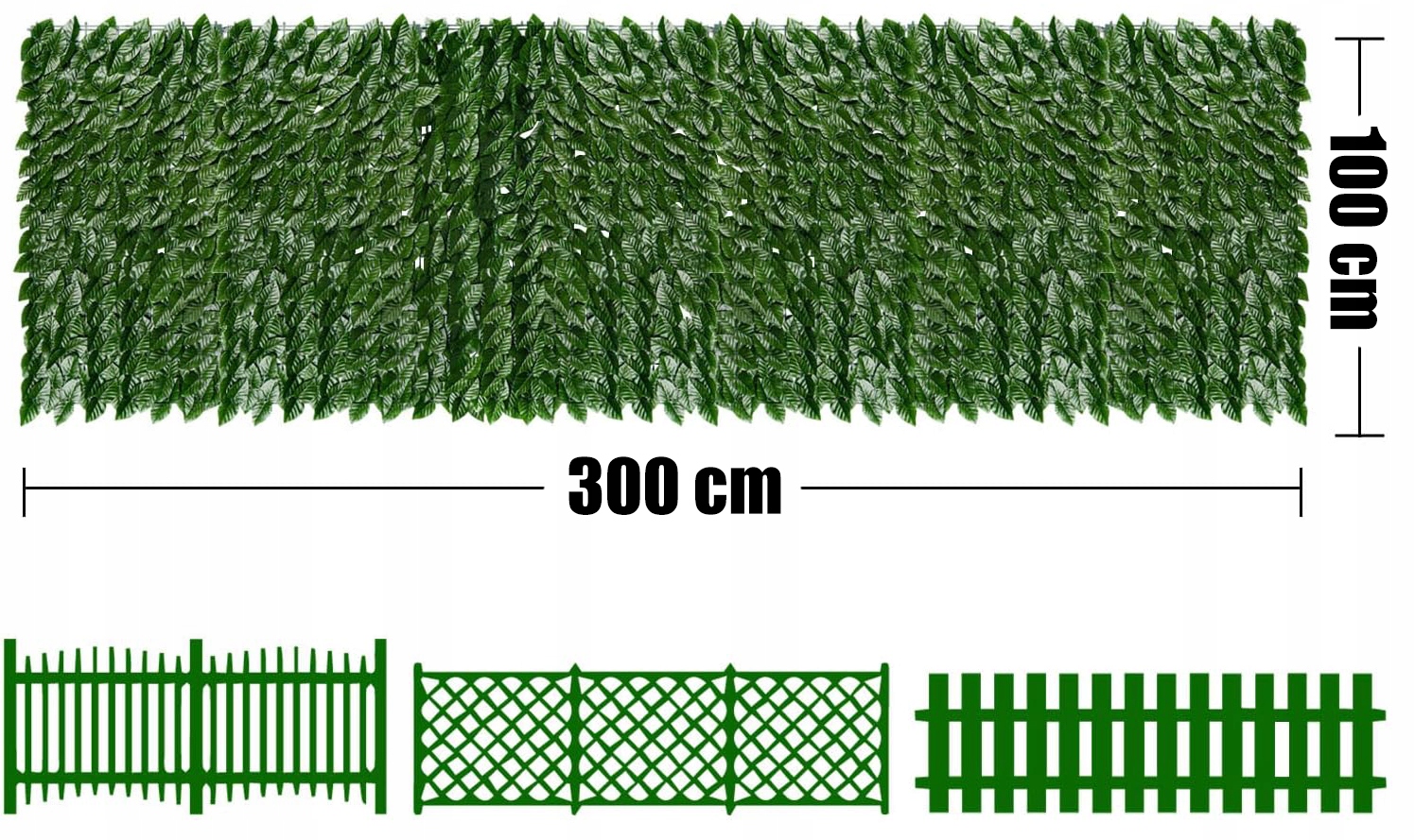 Panou paravan cu frunze artificiale verde pentru gard si balcon, 100x300 cm