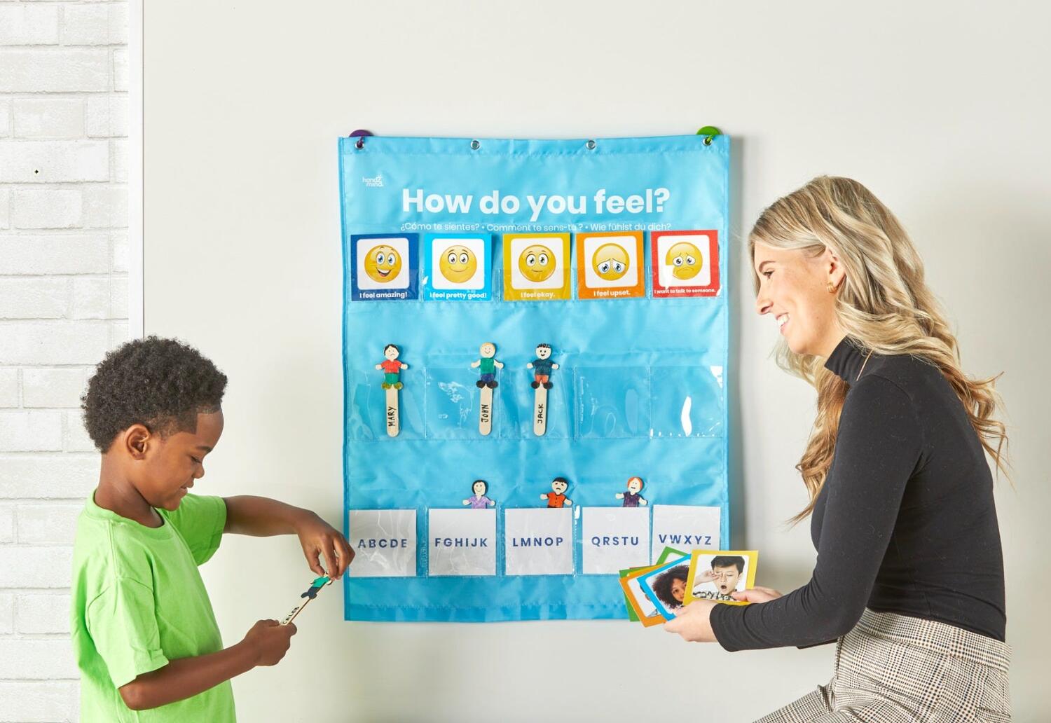 in fiecare zi elevii intra in clasa avand stari diferite, iar aceast panou le permite sa identifice emotia pe care o simt si sa o impartaseasca colegilor folosindu-se de cardurile ilustrate