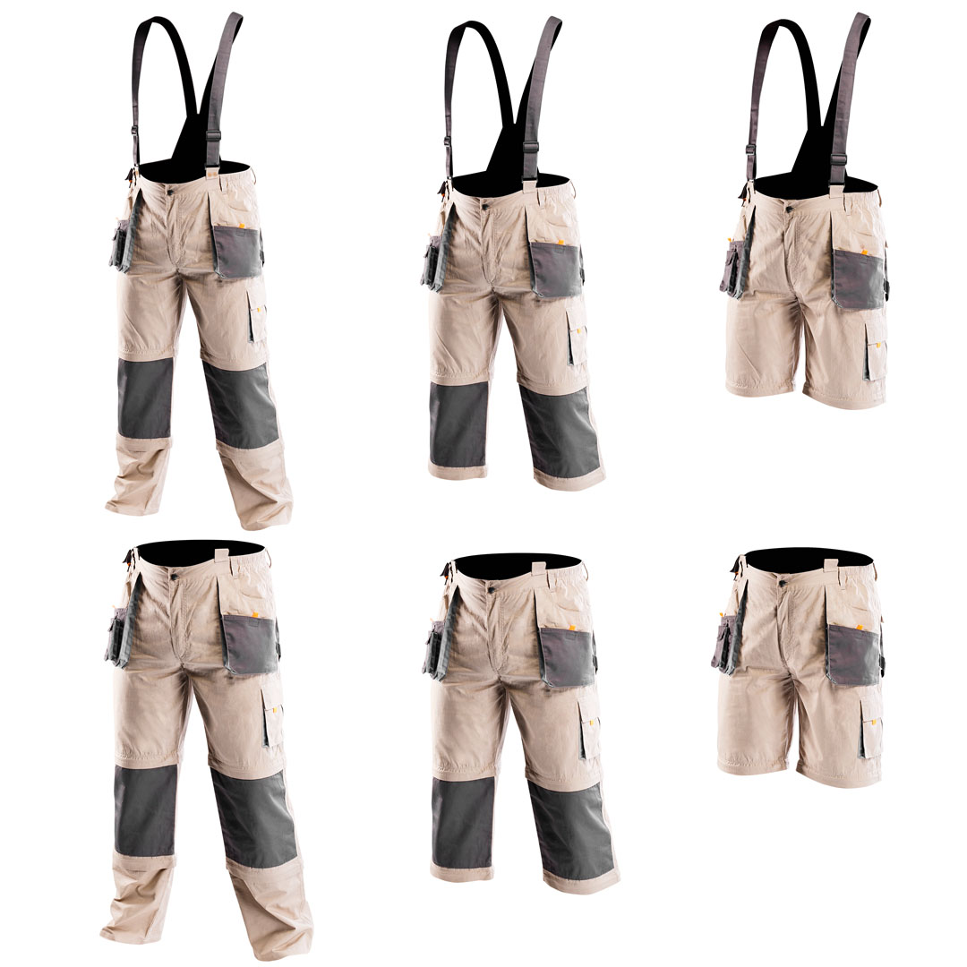 - Pantaloni de lucru 6 in 1 - pot fi purtati cu bretele sau fara bretele, cu trei lungimi diferite: lung, scurt si 3/4.
