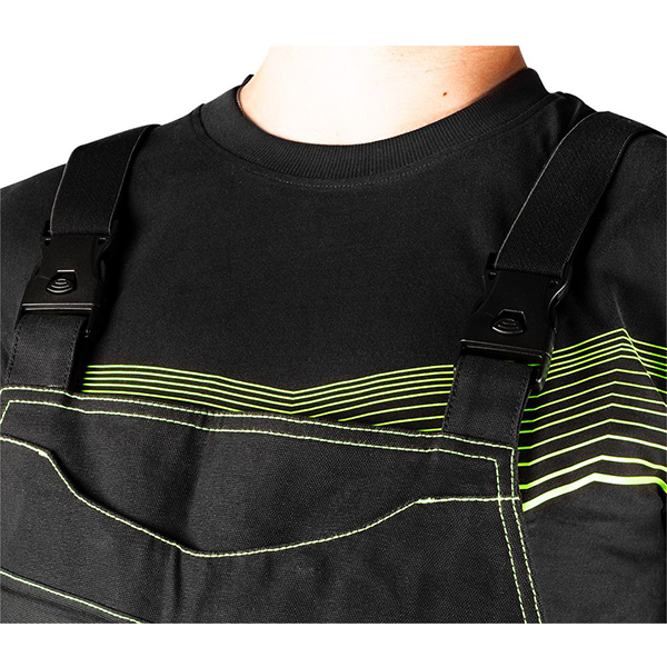 - Salopeta are multe buzunare practice, dintre care doua cu fermoar, sase cu inchizatoare magnetice, dar si carlige practice pentru unelte. Bretelele din cauciuc cu imprimeu antiderapant asigura ca imbracamintea se potriveste perfect