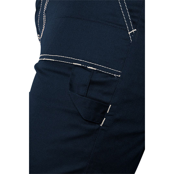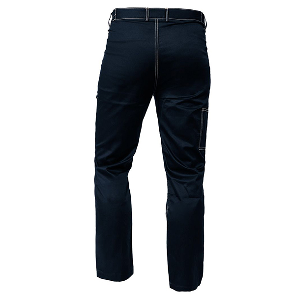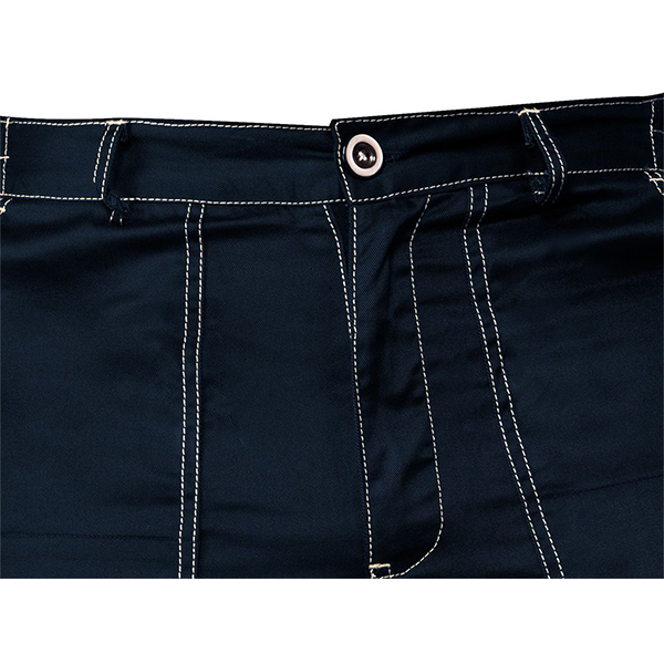 - Pantalonii sunt prevazuti cu buzunare plate, intarite cu cusaturi duble. Au o inchidere cu nasturi si o talie cu elastic suplimentar pentru a garanta o potrivire mai buna. Au picioarele drepte si o bucla practica pentru unelte.