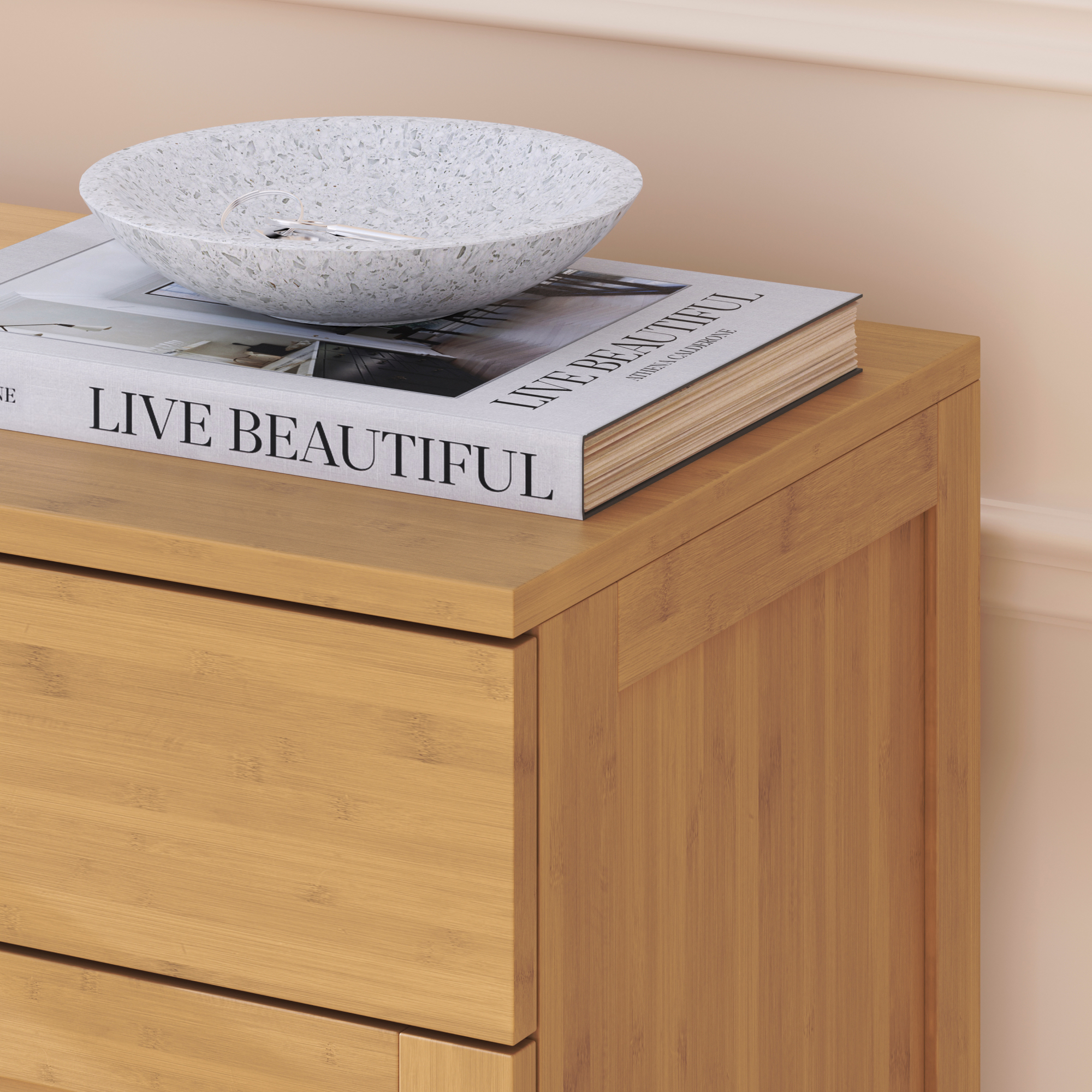 - Bambus natural, aspect cald și întreținere ușoară