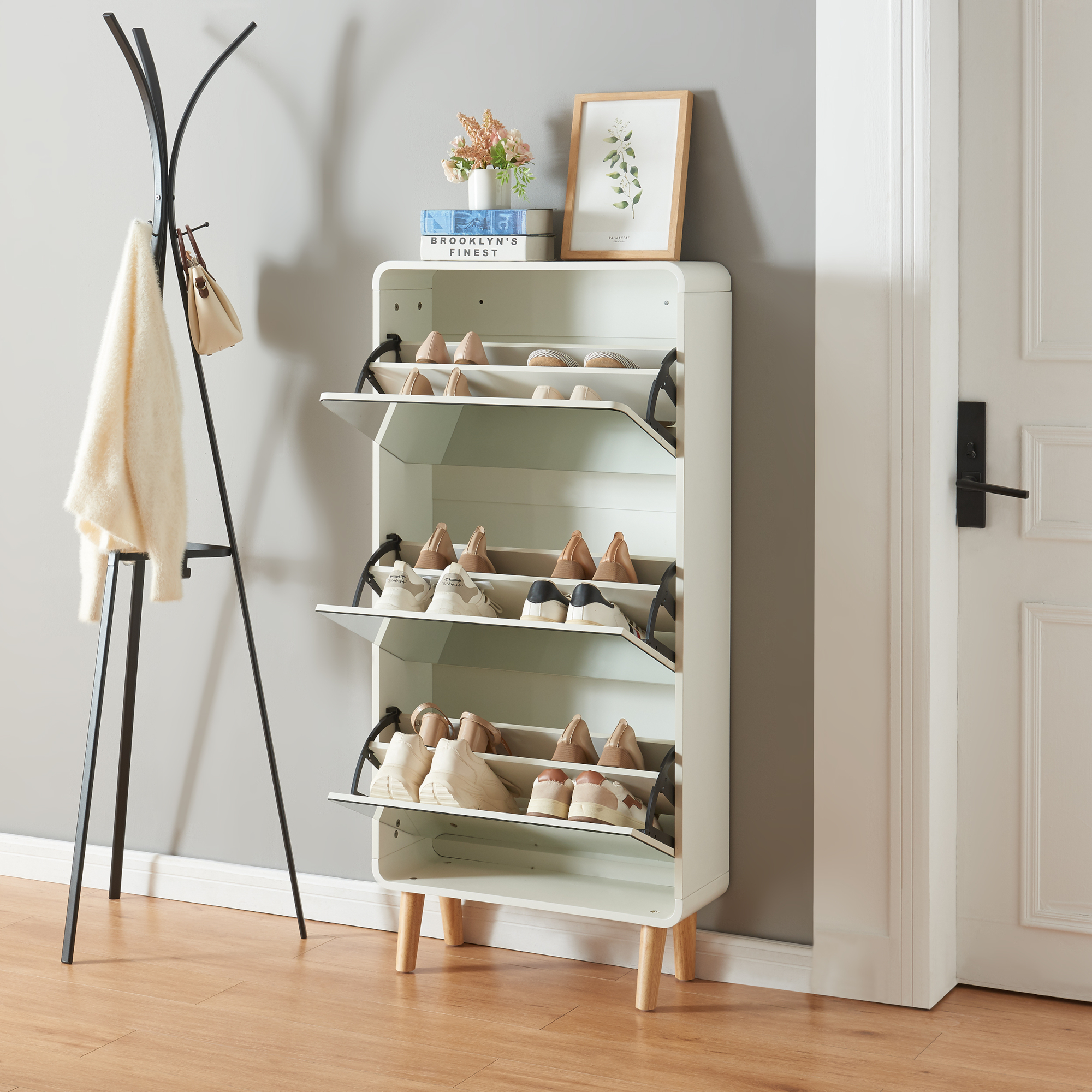 Acest dulap pantofi alb este recomandat pentru hol, antreu sau dressing. Poate fi folosit zilnic pentru organizarea eficientă a încălțămintei familiei, păstrând zona de intrare mai curată și mai ordonată.