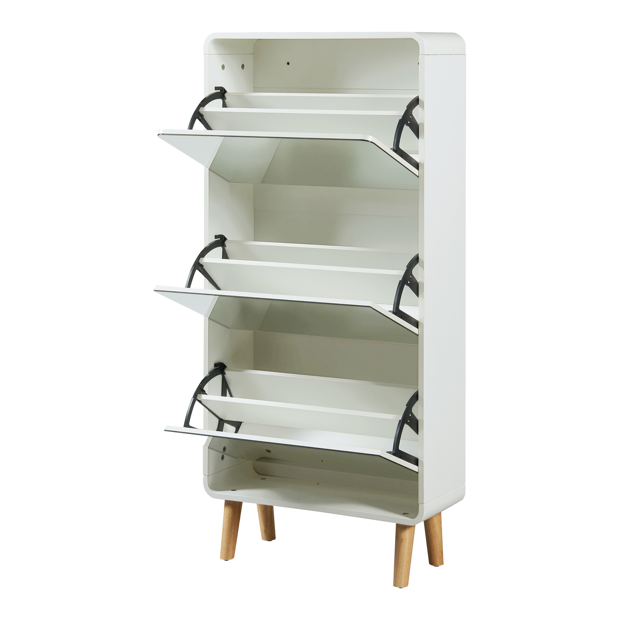 Prevăzut cu 3 clape rabatabile, fiecare compartiment este împărțit în două zone interioare pentru o organizare clară a pantofilor sport, sneakerșilor, sandalelor sau altor tipuri de încălțăminte. Fronturile cu aspect de oglindă sunt utile pentru un control rapid al ținutei înainte de plecare și adaugă un plus de luminozitate spațiului.