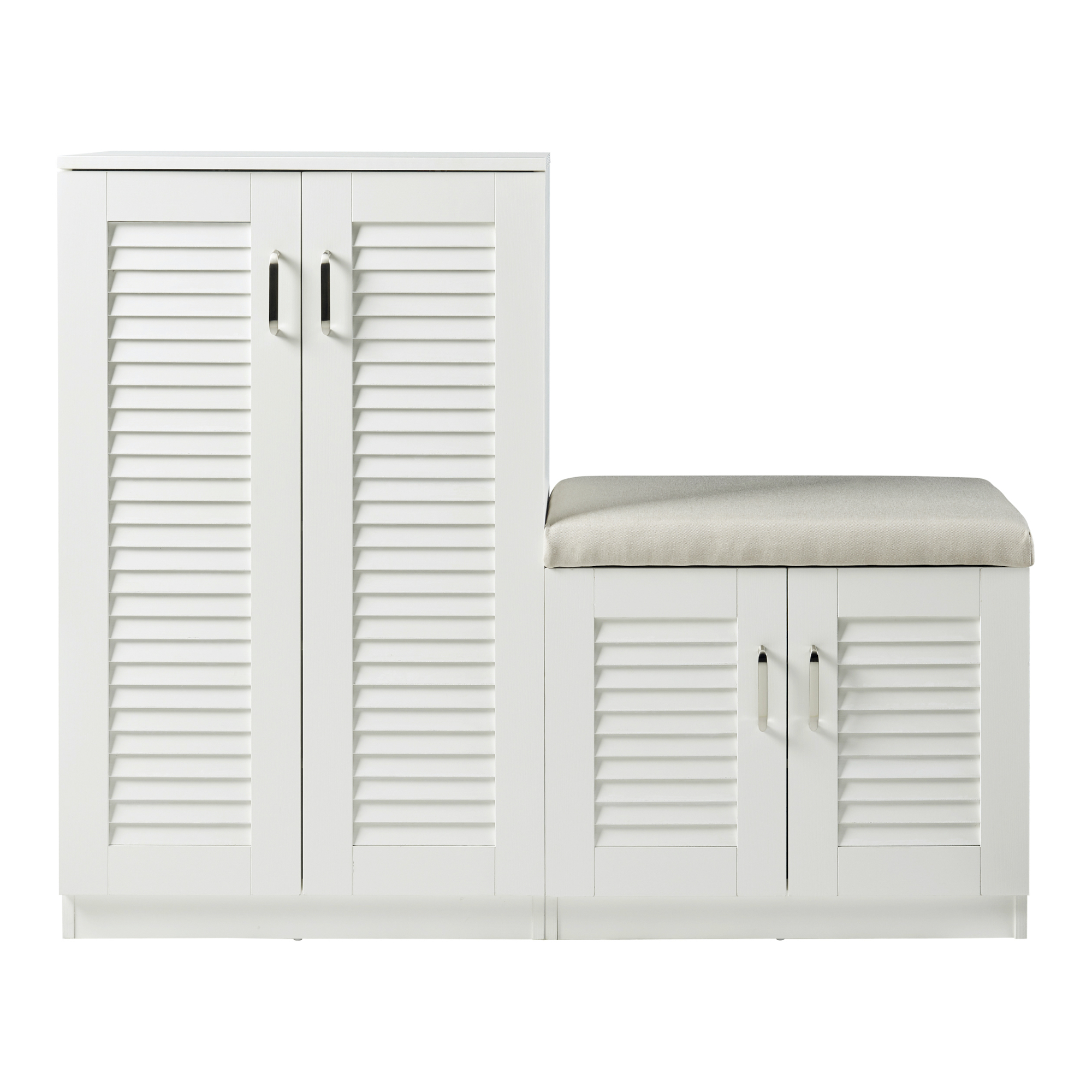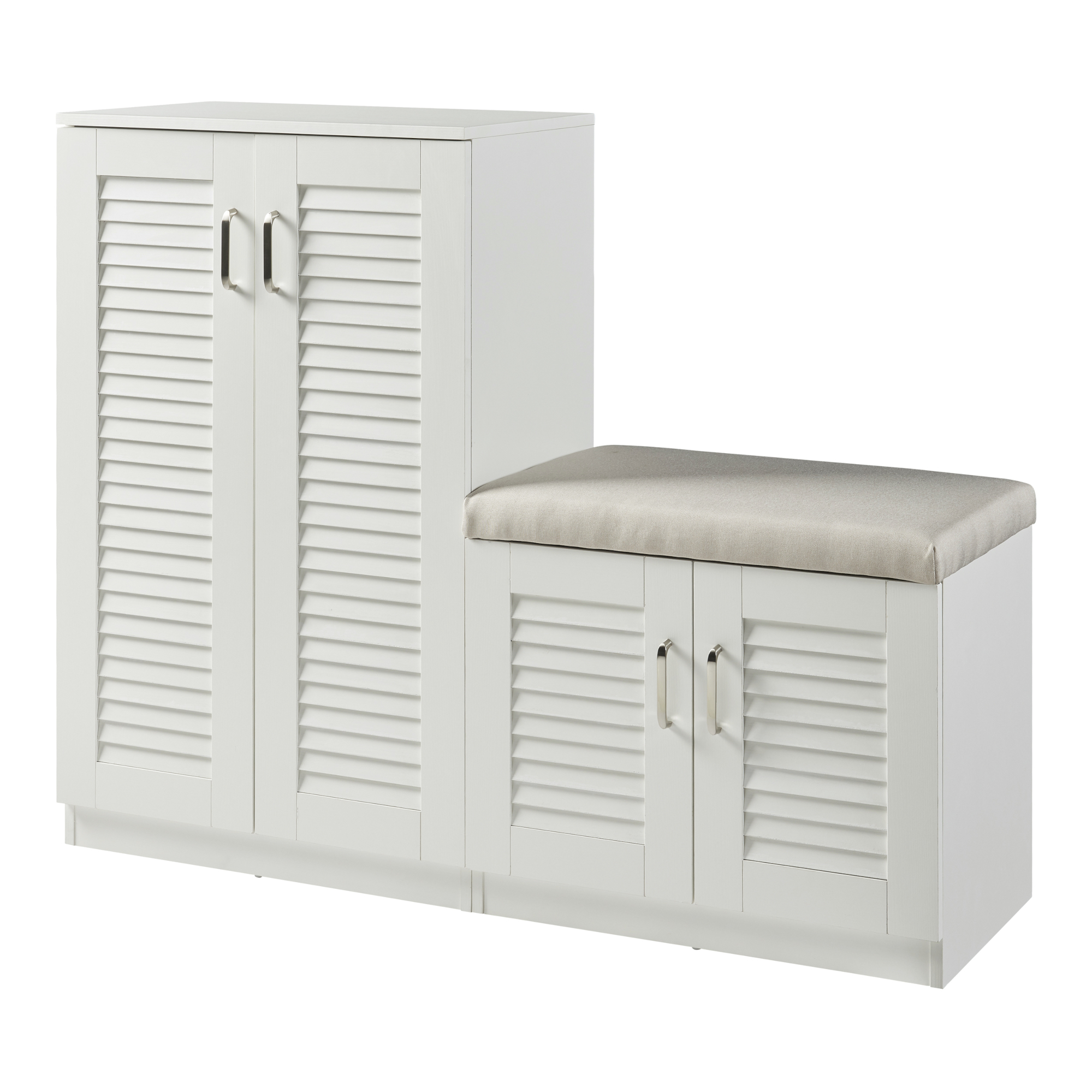Pantofar alb cu bancă integrată Løten, 120x36x97 cm, 4 uși