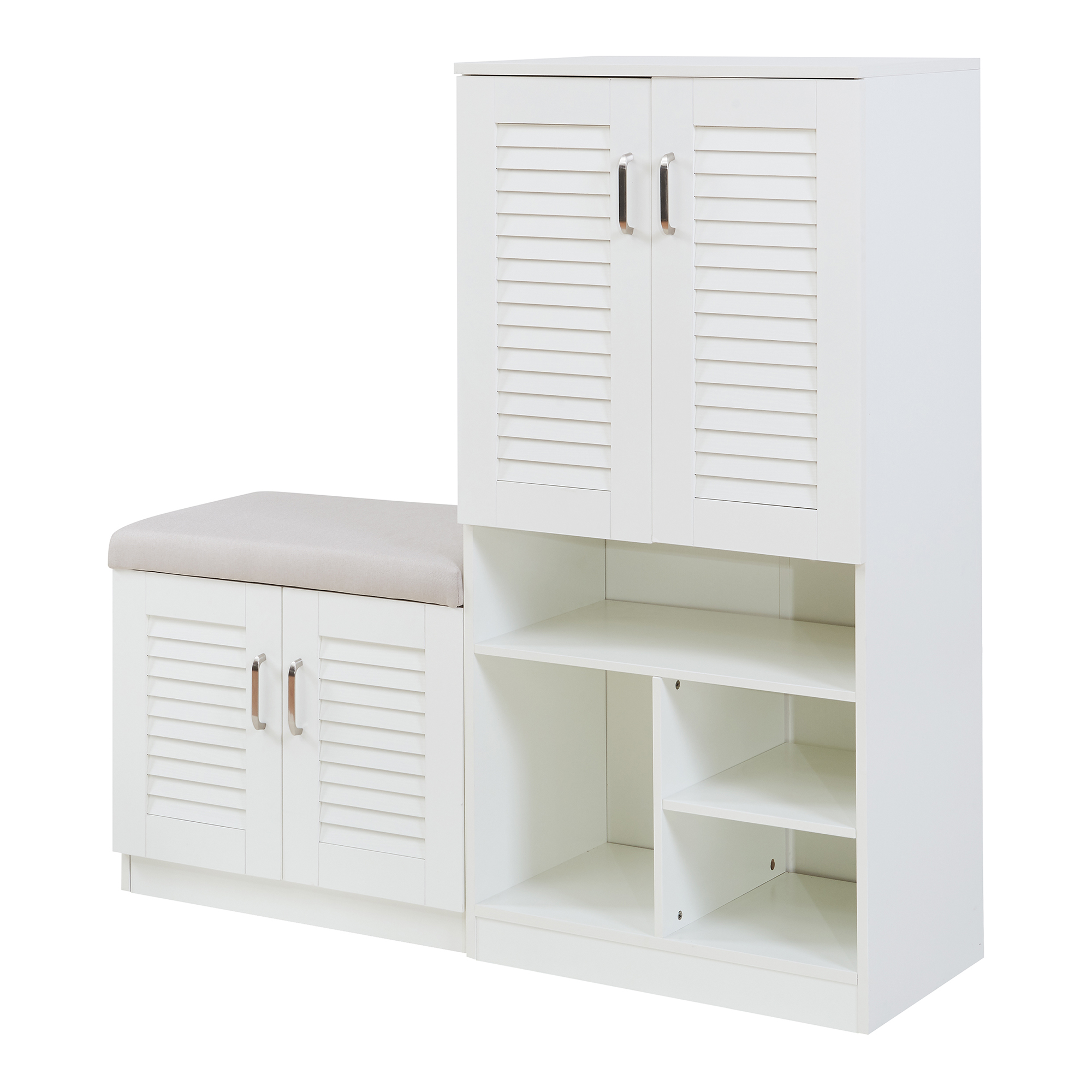 Pantofar alb cu bancă și 4 uși ventilate Løten, 120x36,5x120 cm