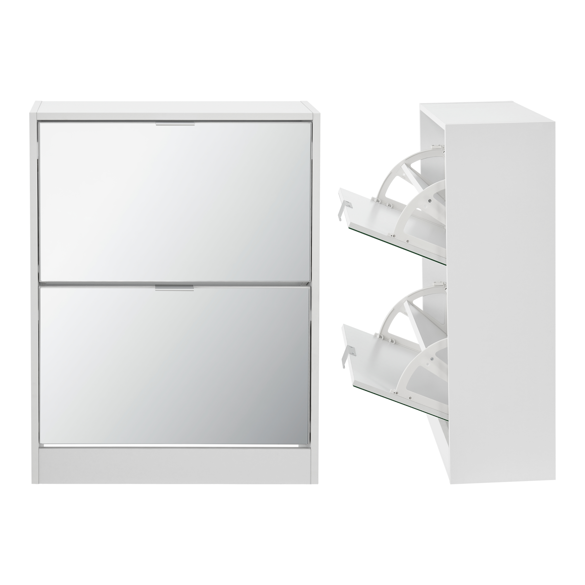 Descriere Pantofar alb oglindă Kragerø, 2 uși,