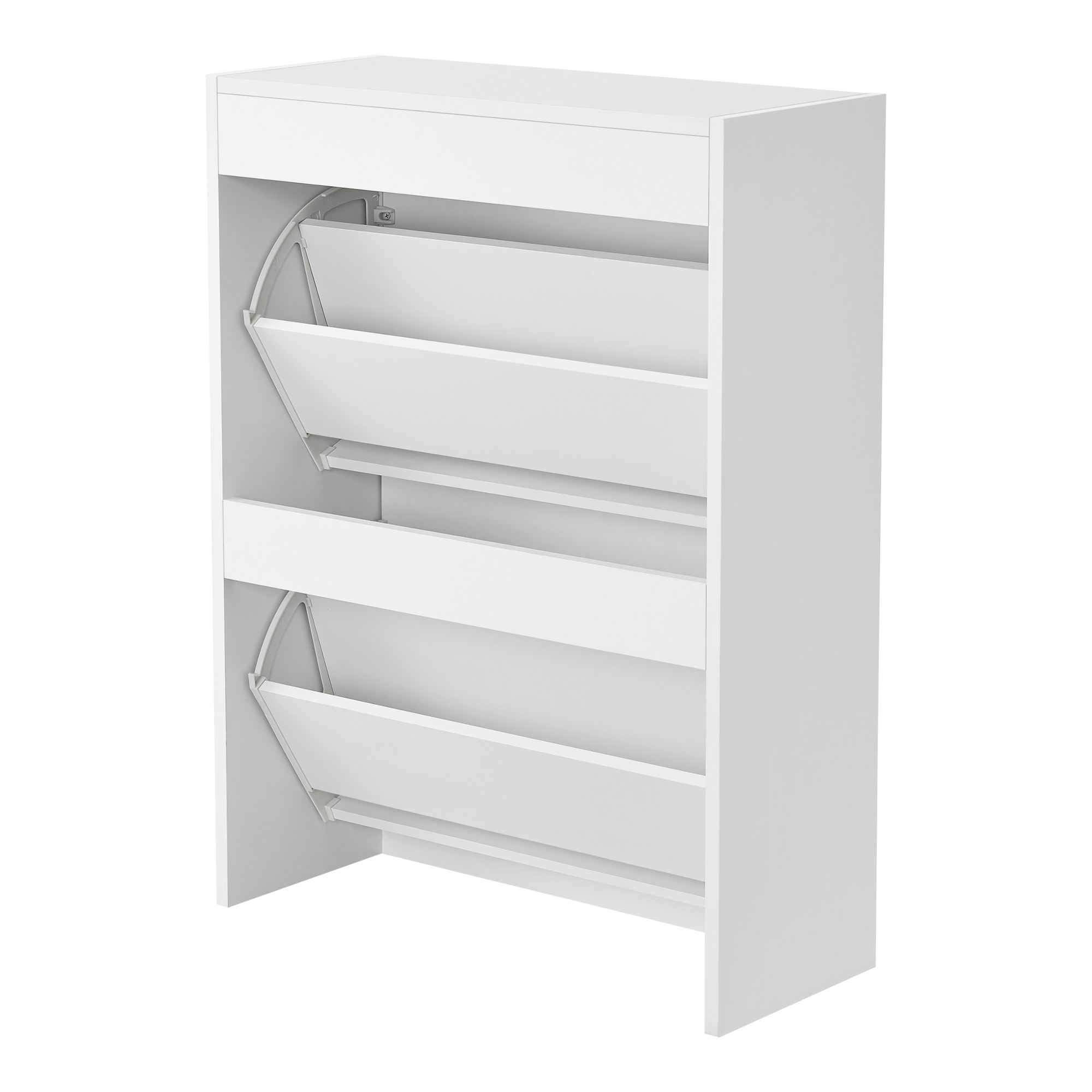 La interior, cele două compartimente spațioase, fiecare cu despărțitor median, permit organizarea eficientă a încălțămintei. Acest dulap pantofi îngust poate găzdui până la 12 perechi de pantofi, fiind ideal pentru apartamente, holuri mici sau locuințe moderne unde fiecare centimetru contează.