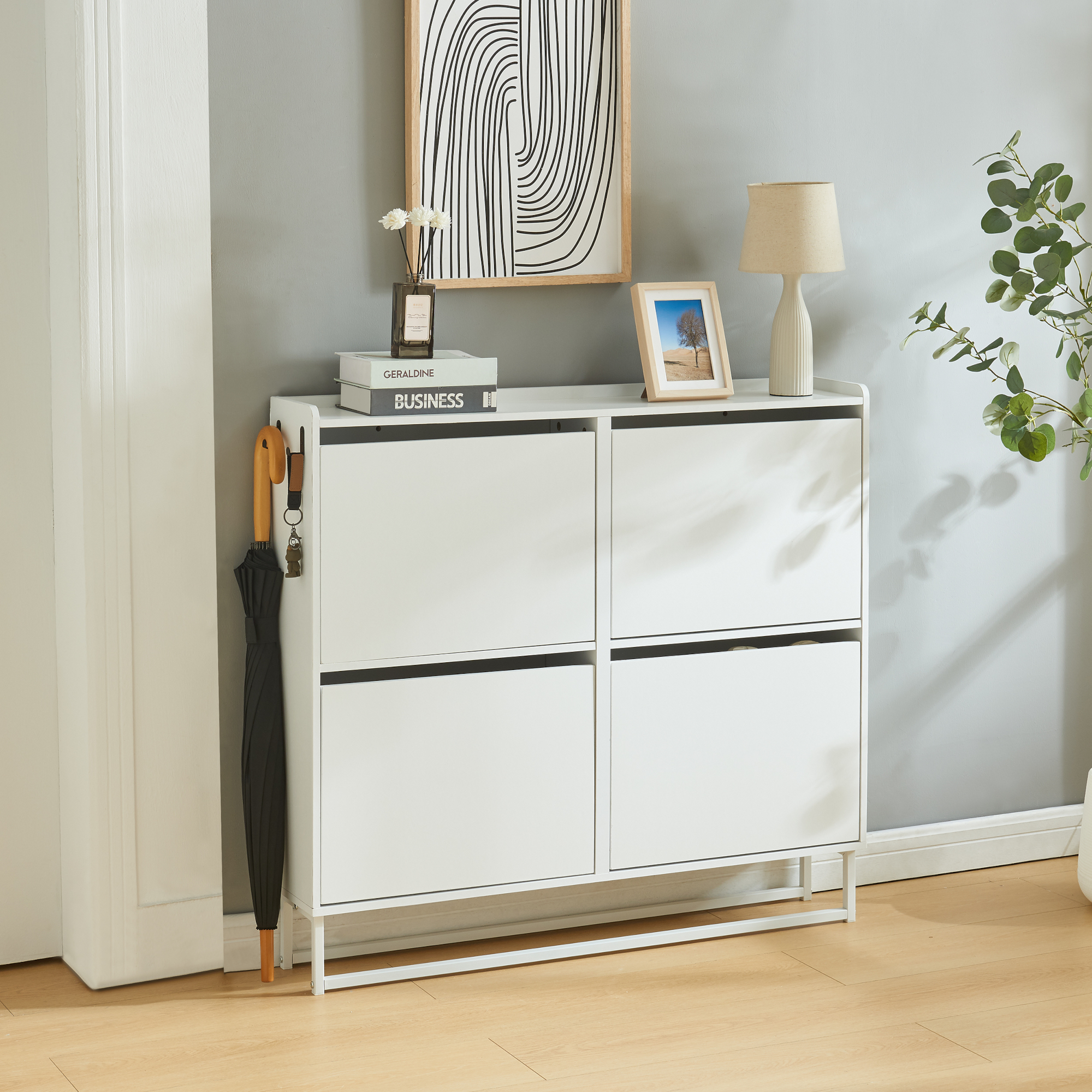 Acest pantofar pentru hol este ideal pentru apartamente, case sau spații de intrare unde ai nevoie de depozitare eficientă pe verticală. Clapetele se deschid individual, astfel încât să găsești rapid perechea potrivită și să menții ordinea zi de zi.