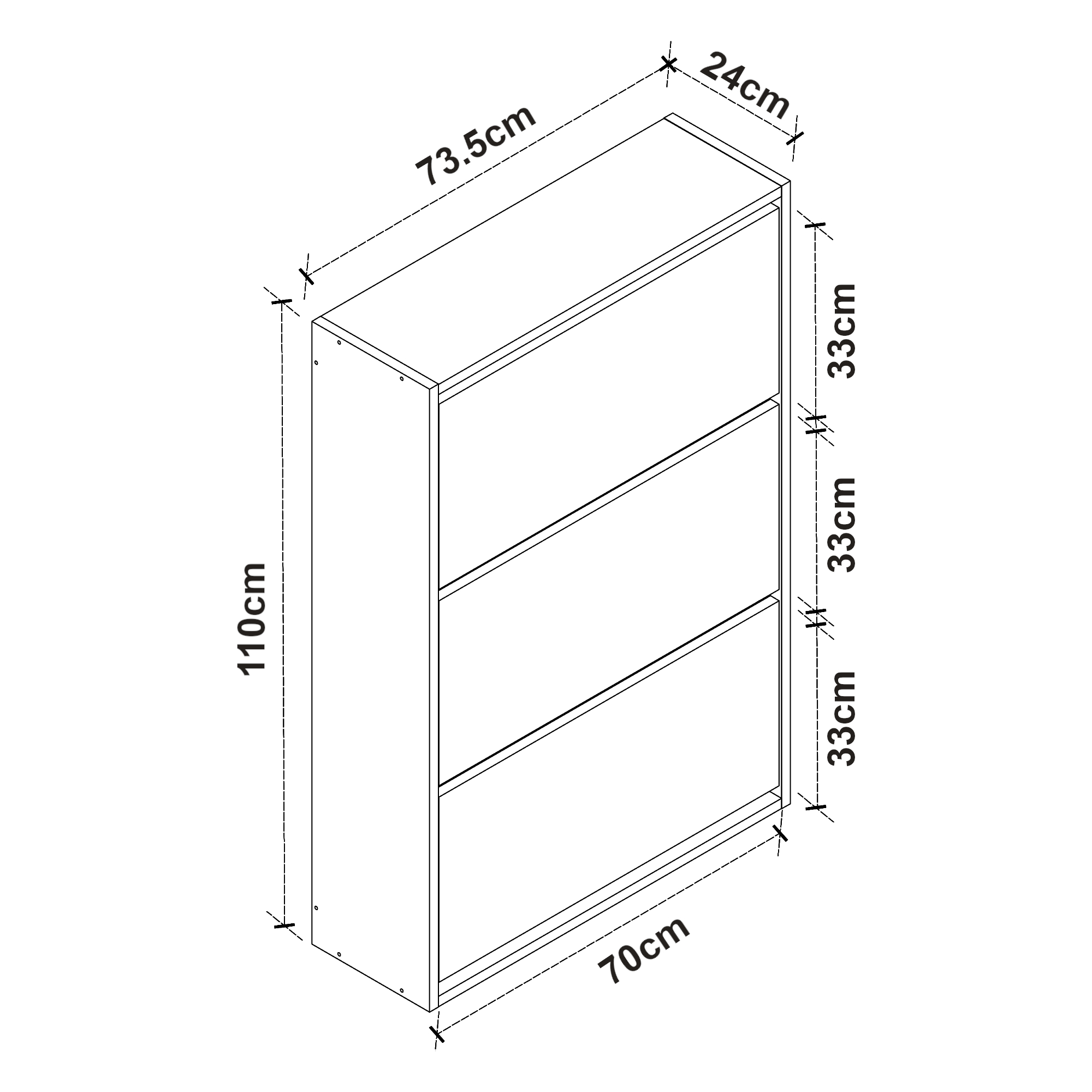 Datorită formatului său compact și adâncimii reduse, acest dulap de pantofi îngust ajută la economisirea spațiului, oferind în același timp loc suficient pentru depozitarea organizată a încălțămintei de zi cu zi. Cele 3 uși rabatabile ascund compartimente încăpătoare, fiecare prevăzut cu perete despărțitor central, pentru o aranjare practică și rapidă.