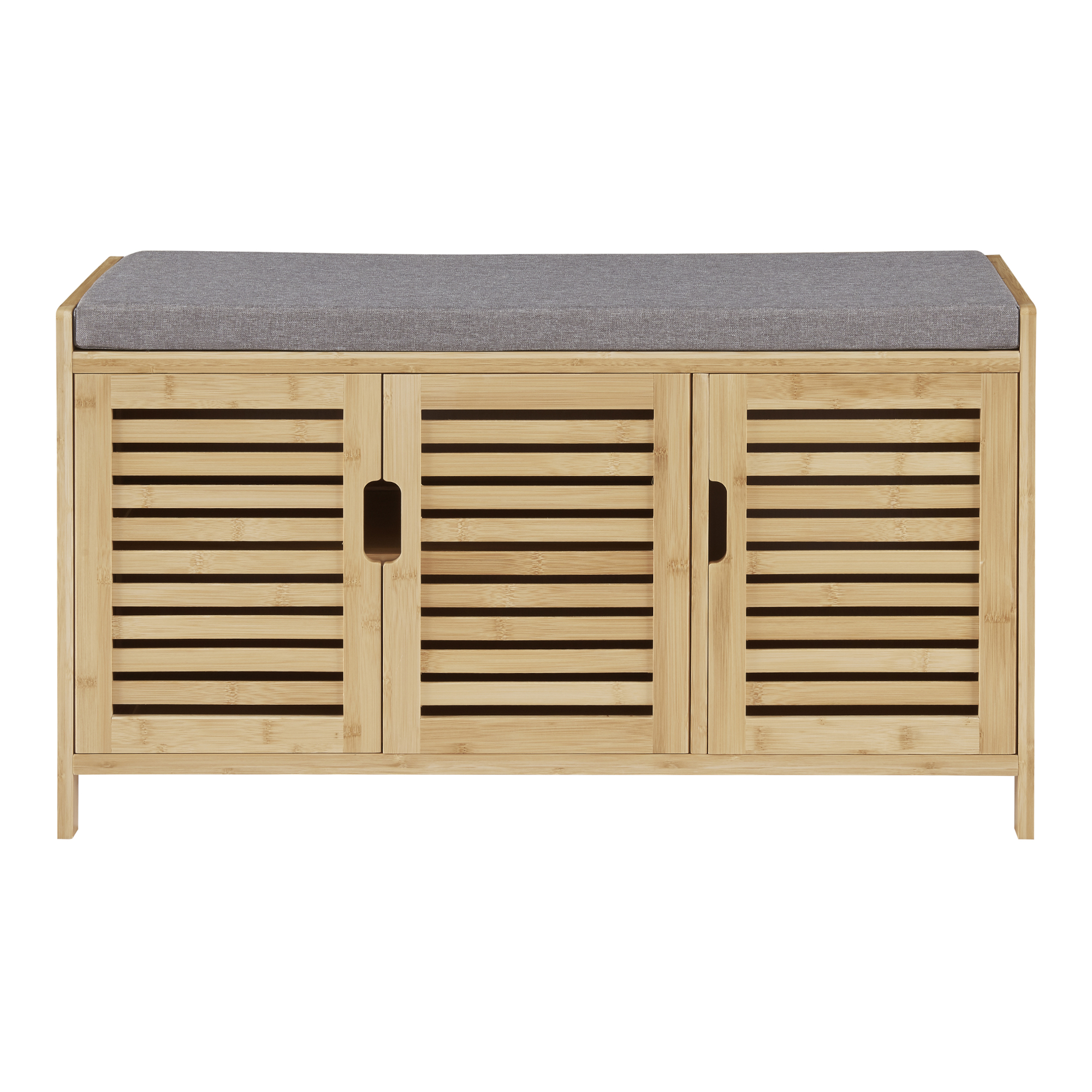 Pantofar cu bancă și șezut tapițat din bambus Selk, 90 x 50 x 35 cm