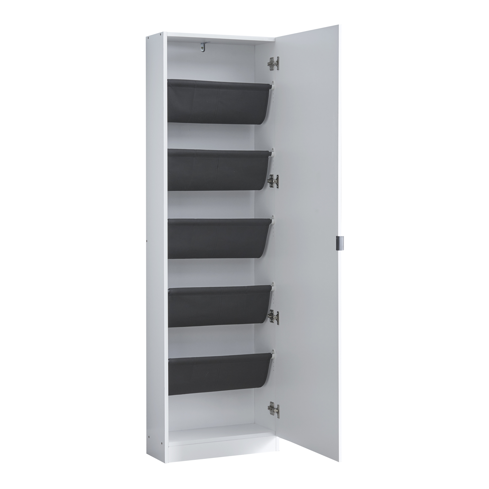 Pantofar cu oglindă Meura este soluția ideală pentru organizarea eficientă a încălțămintei în hol, dormitor sau dressing. Cu un design înalt, îngust și elegant, acest dulap pentru pantofi economisește spațiu și oferă un aspect modern încăperii. Frontul cu oglindă este practic pentru verificarea ținutei înainte de plecare, iar interiorul bine compartimentat păstrează încălțămintea ordonată și ferită de praf.