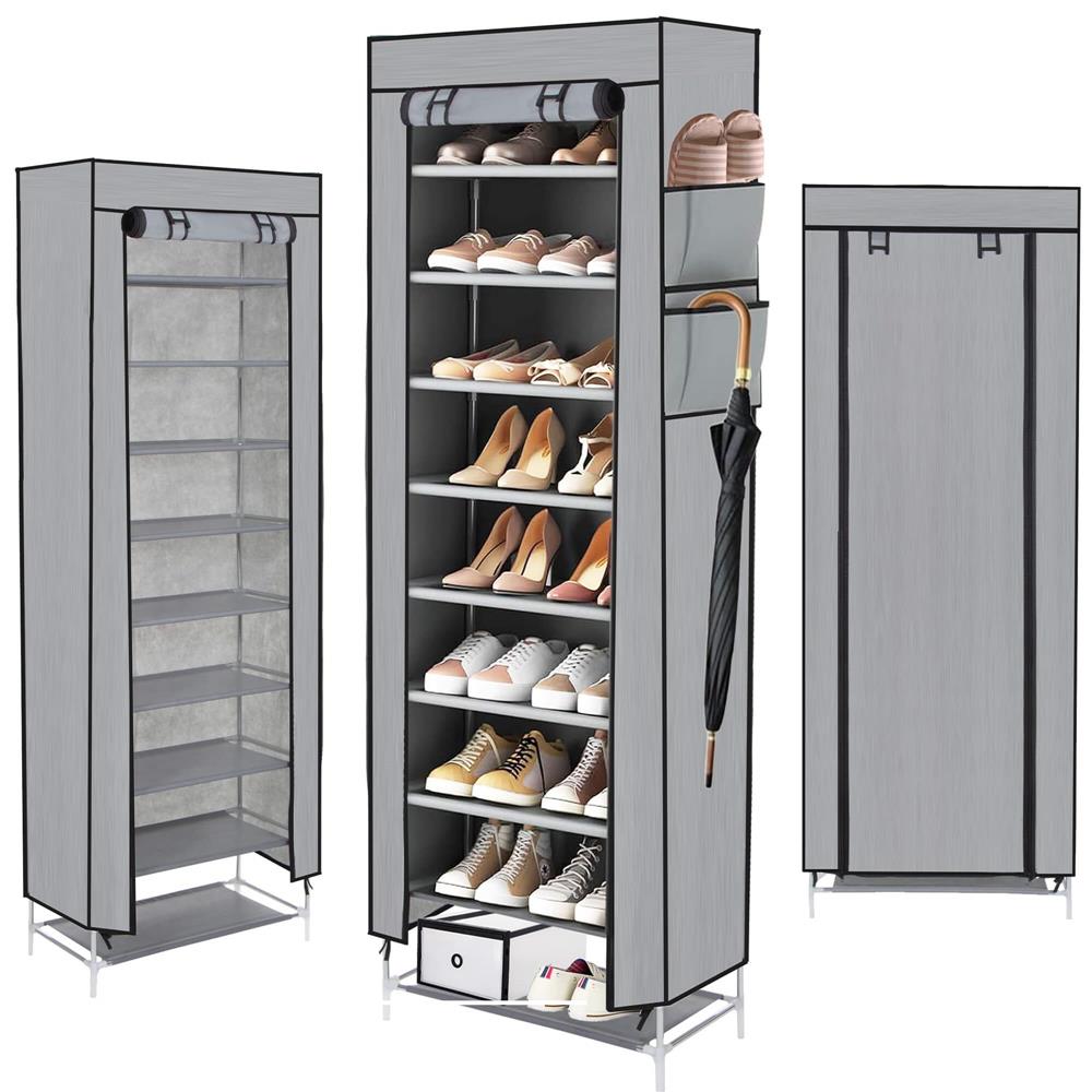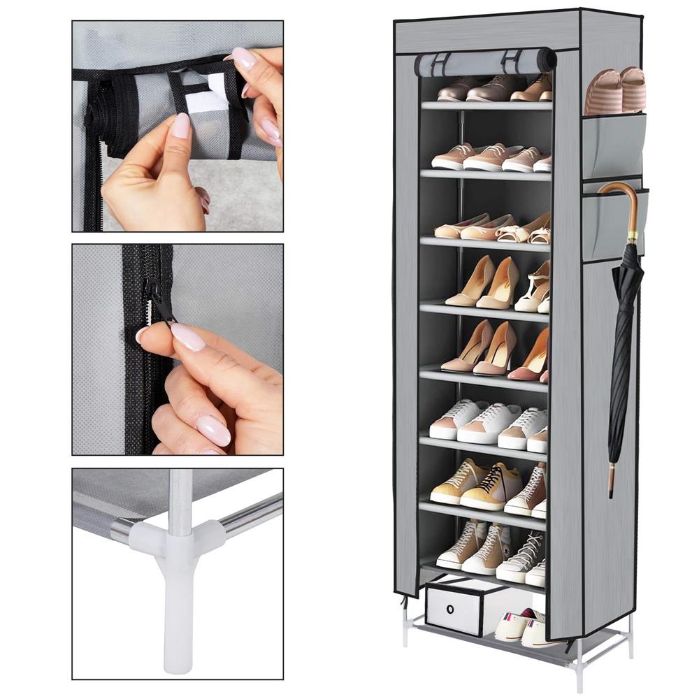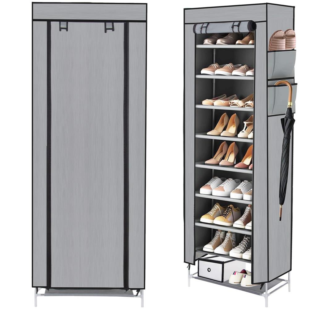 Pantofar din material textil, portabil, cu rafturi, 60x28x168cm, gri Household NewTrend
