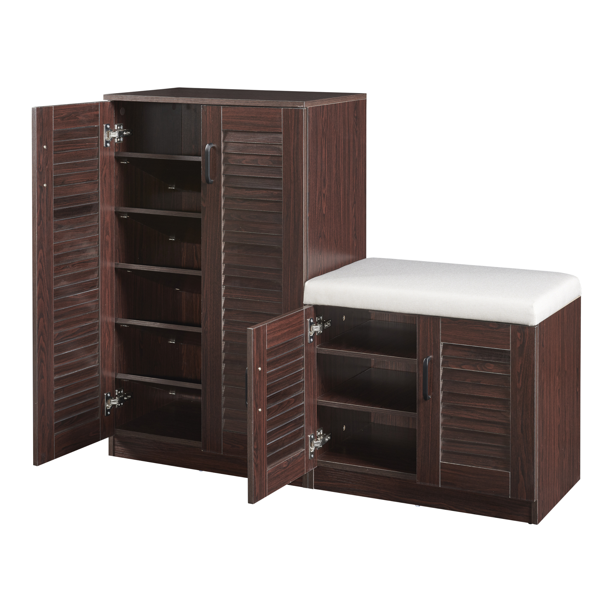 Pantofar Løten cu banchetă și 9 rafturi, 120x36x97 cm, wenge