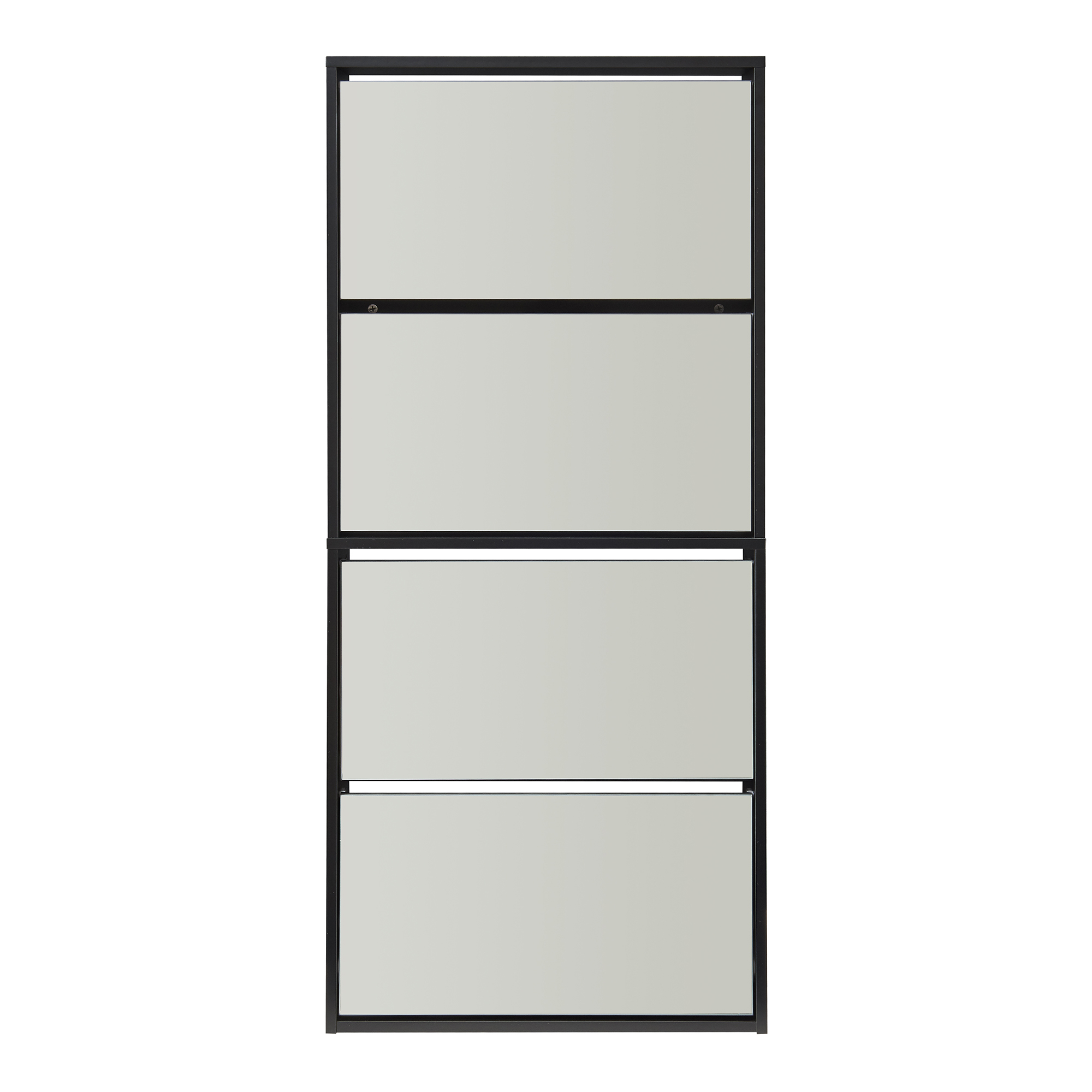 Pantofar Lund cu 4 uși rabatabile cu oglindă, negru, 16 perechi