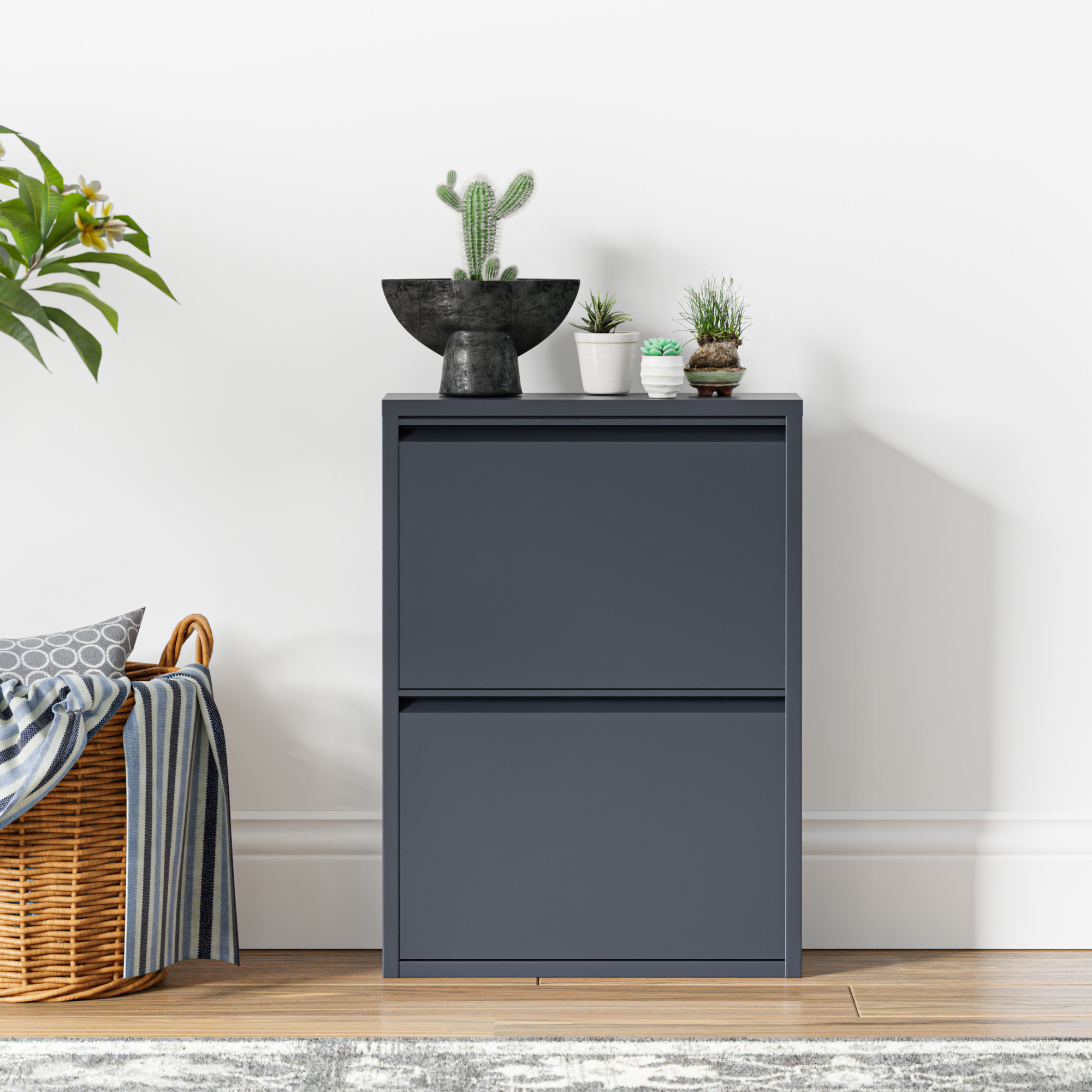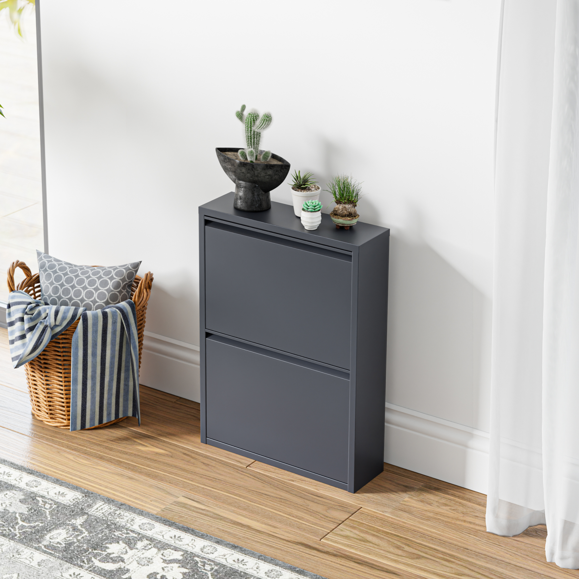 Prevăzut cu două compartimente rabatabile, acest pantofar îngust oferă loc pentru până la 4 perechi de pantofi. Este potrivit pentru sneakerși, pantofi sport, sandale și alte tipuri de încălțăminte de zi cu zi. În plus, partea superioară poate fi folosită ca poliță pentru chei, ochelari, mănuși sau obiecte decorative.