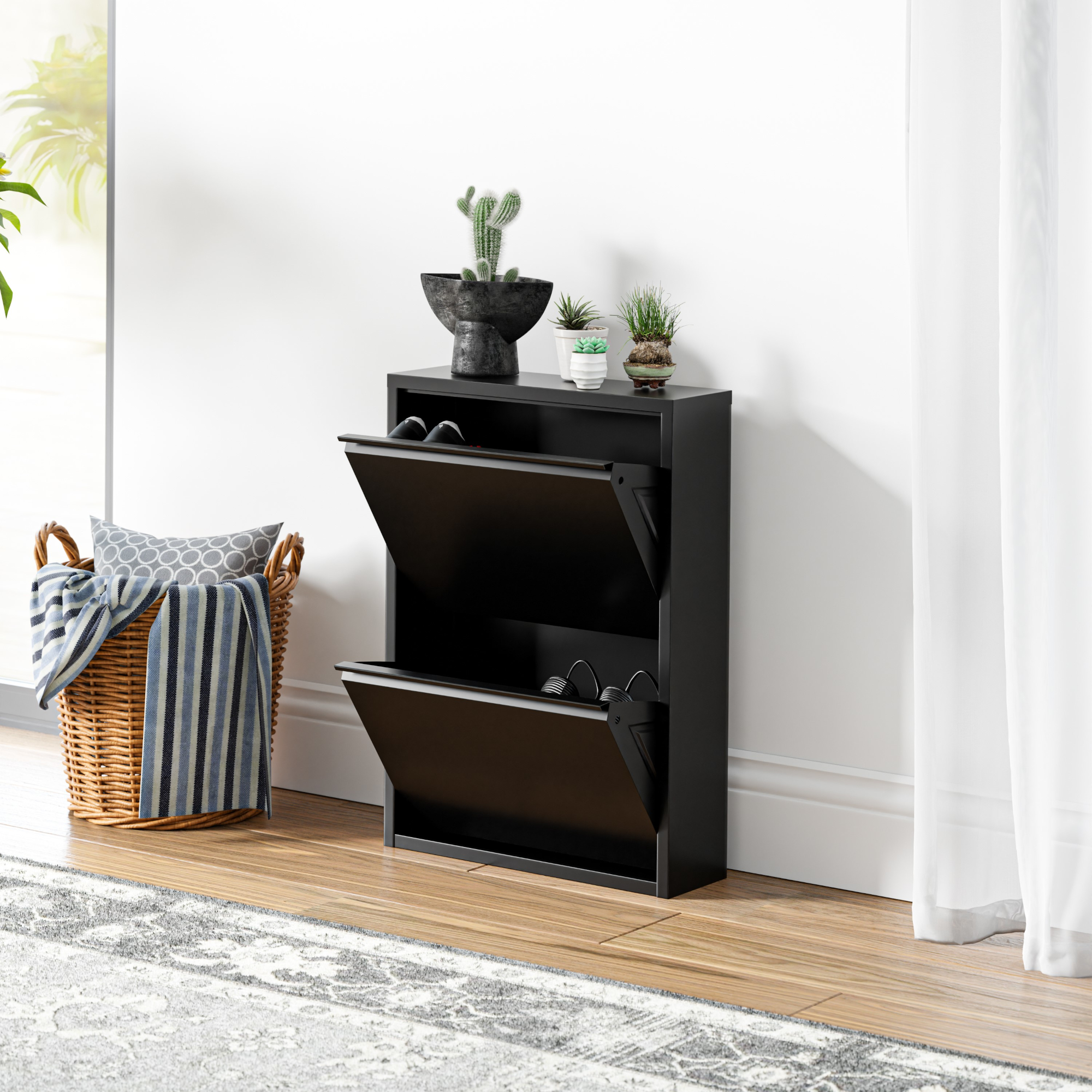 Cele doua clapete se deschid separat, astfel incat puteti sorta usor sneakersi, pantofi sport, sandale sau alte tipuri de incaltaminte. In plus, partea superioara functioneaza ca o polita practica pentru chei, ochelari, manusi sau mici decoratiuni, oferind un plus de utilitate zonei de intrare.