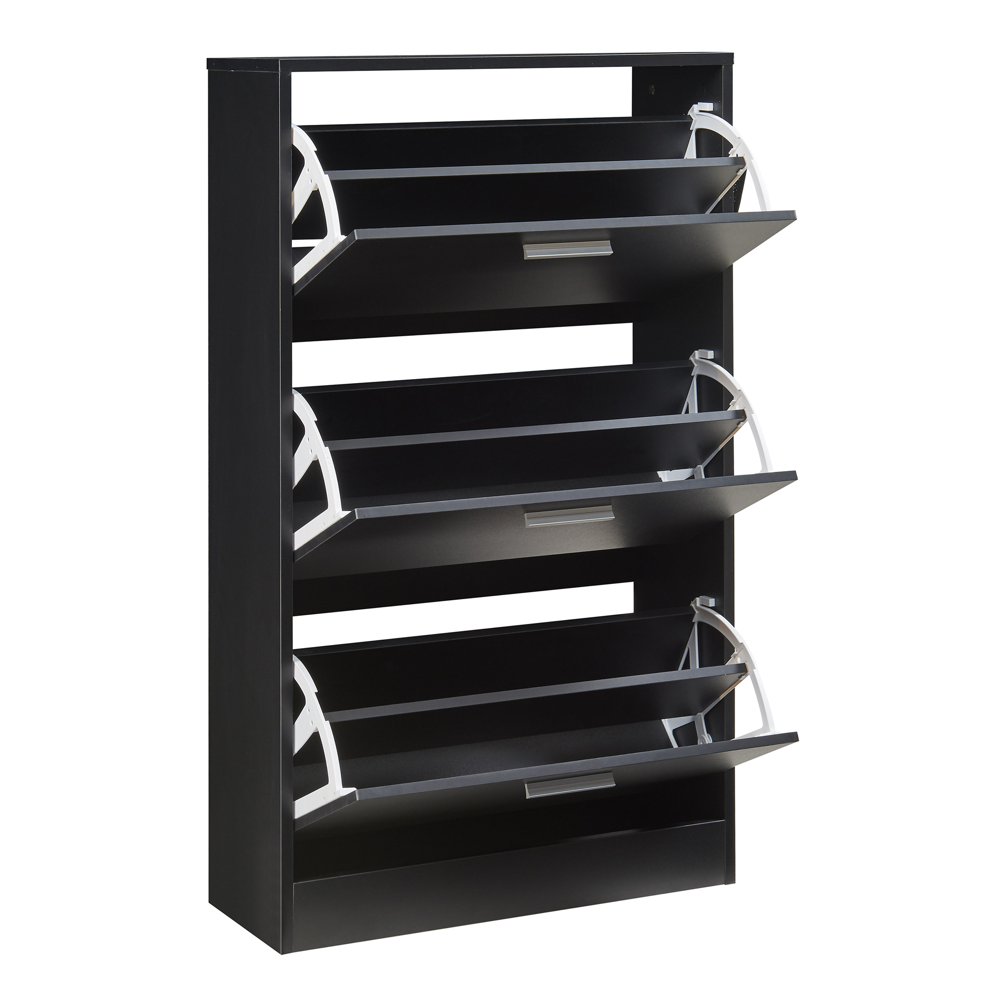 Fiecare dintre cele 3 clapete se deschide separat si include compartimente bine organizate, pentru o aranjare clara si usor accesibila. In plus, politele interioare sunt detasabile, astfel incat poti depozita fara probleme si incaltaminte mai inalta, precum ghete sau botine. Partea superioara poate fi folosita ca suprafata de depozitare pentru chei, ochelari, corespondenta sau decoratiuni.