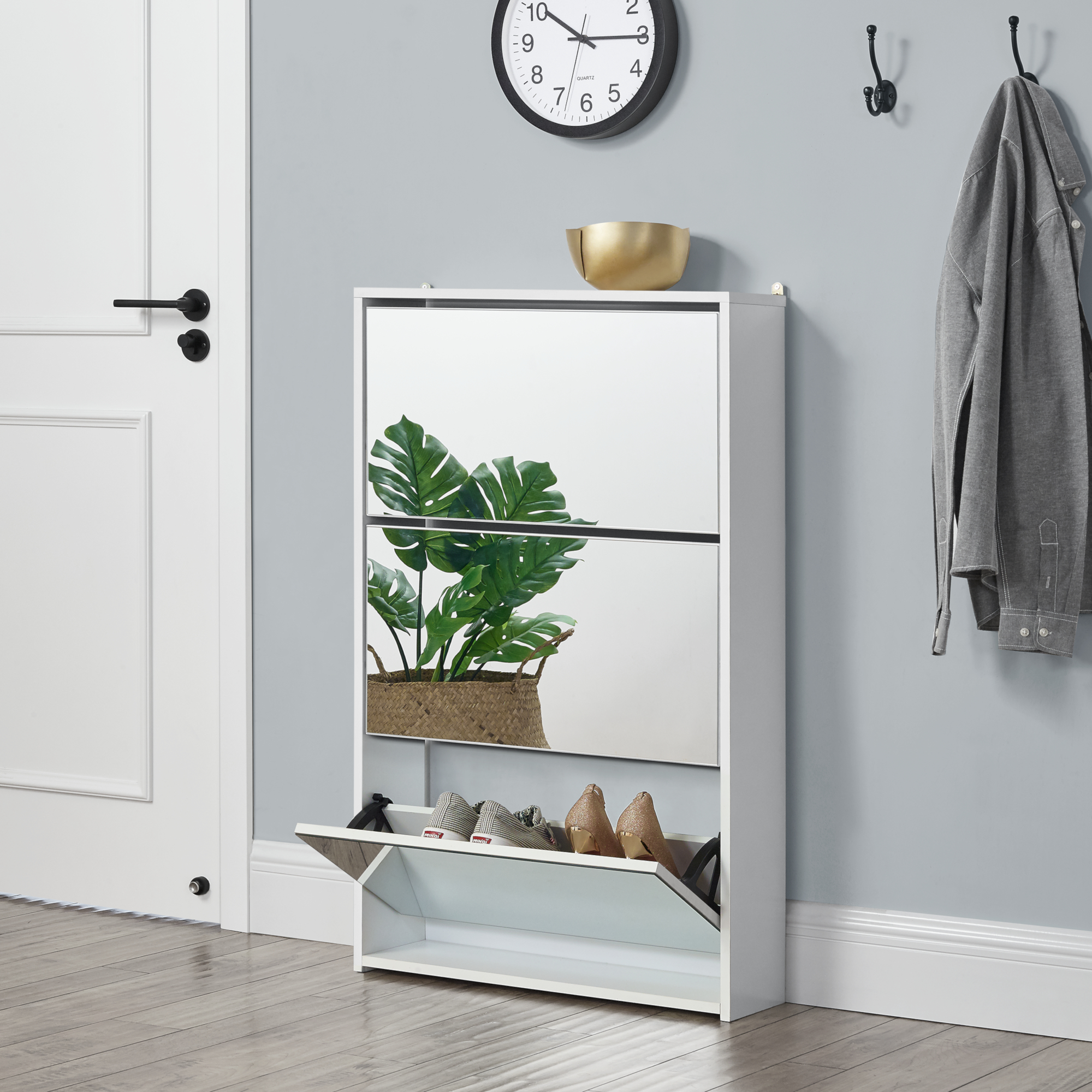 Pantofar Vogar alb cu 3 uși rabatabile și front cu oglindă