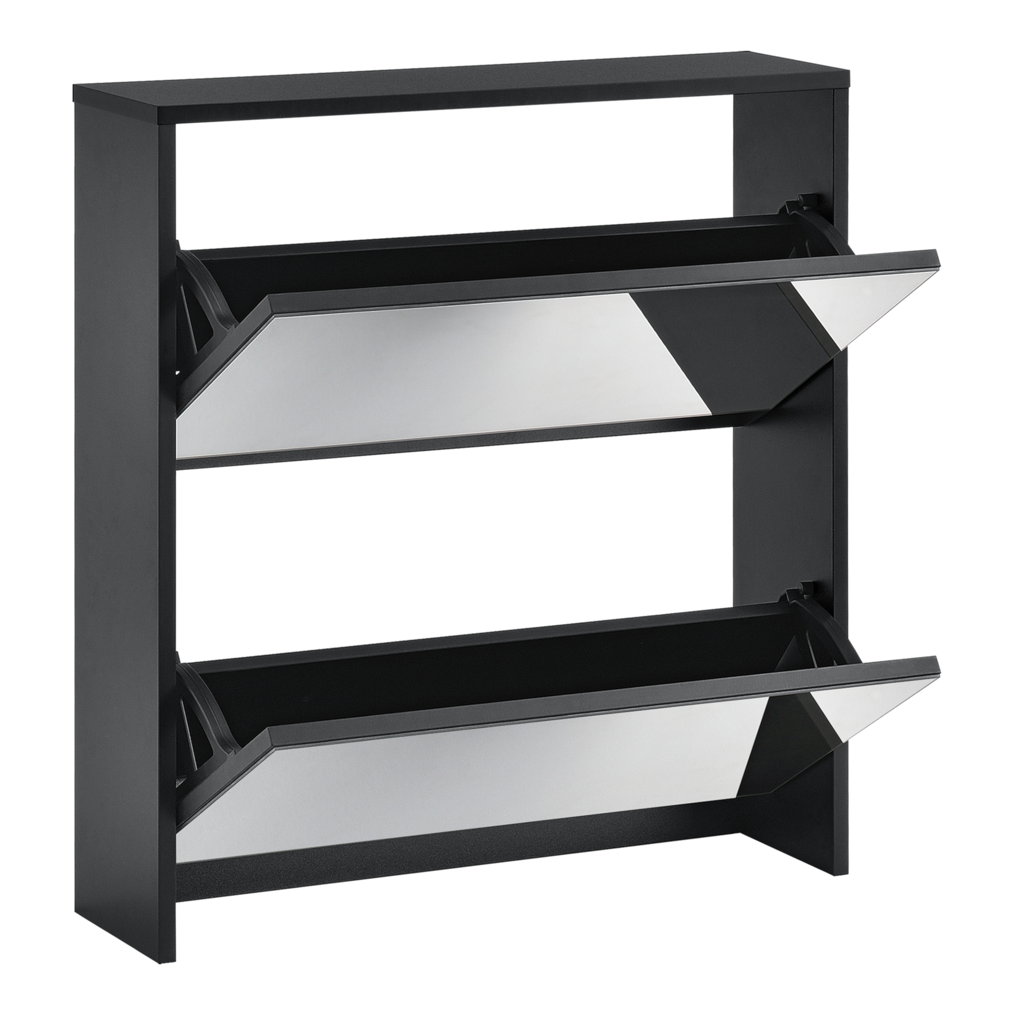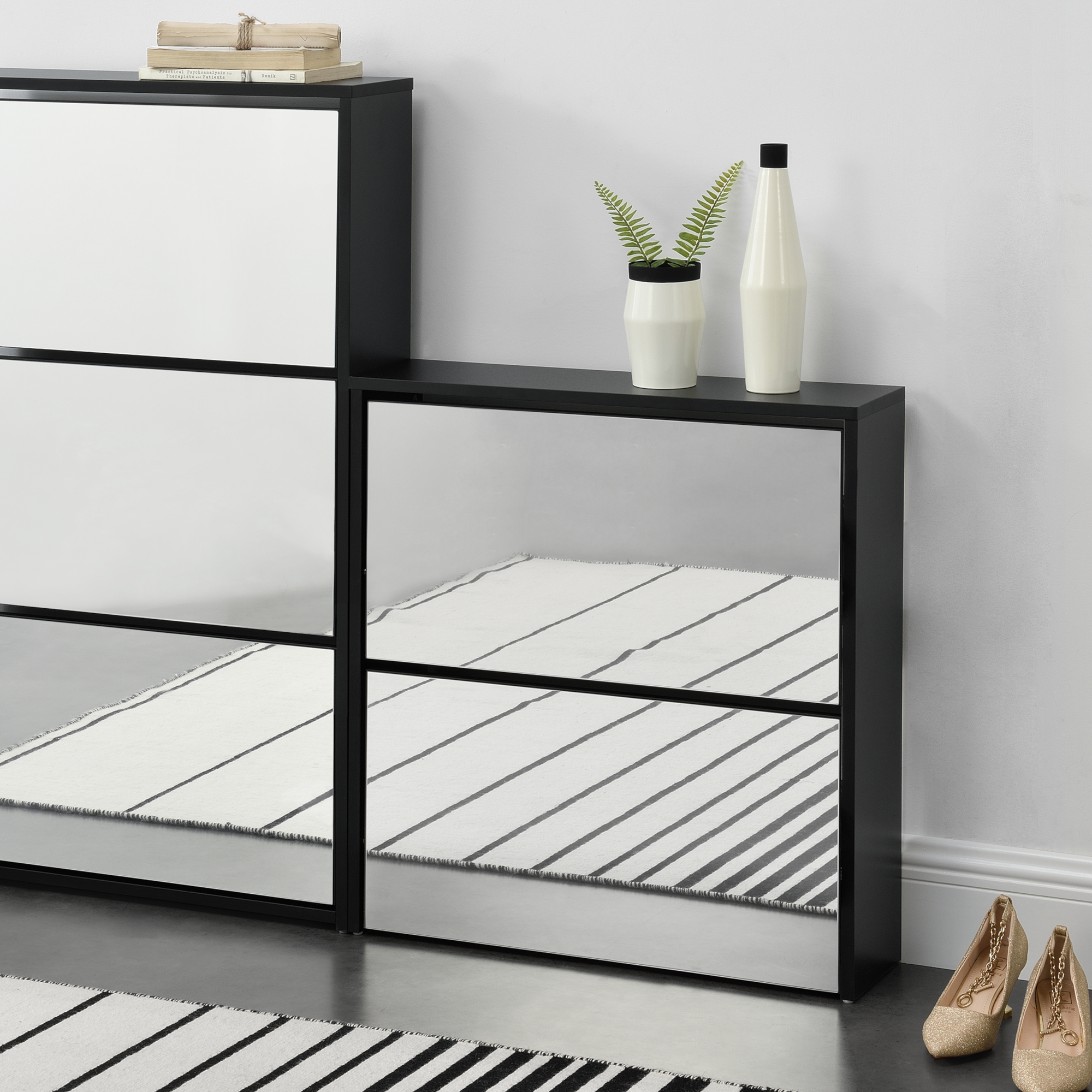 Pantofarul Vogar este soluția ideală pentru organizarea încălțămintei în spații mici, fără să renunți la un aspect modern și elegant. Cu un design compact, finisaj negru și fronturi cu oglindă, acest dulap de pantofi se integrează ușor în hol, pe coridor sau în zona de intrare, oferind atât funcționalitate, cât și un plus de stil.