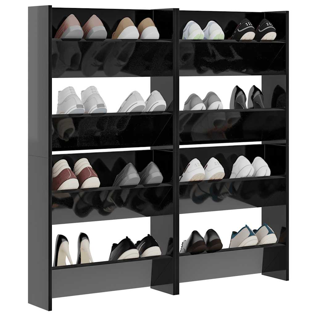 Pantofare de perete, 4 buc., negru extralucios, 60x18x60cm, PAL GartenMobel Dekor