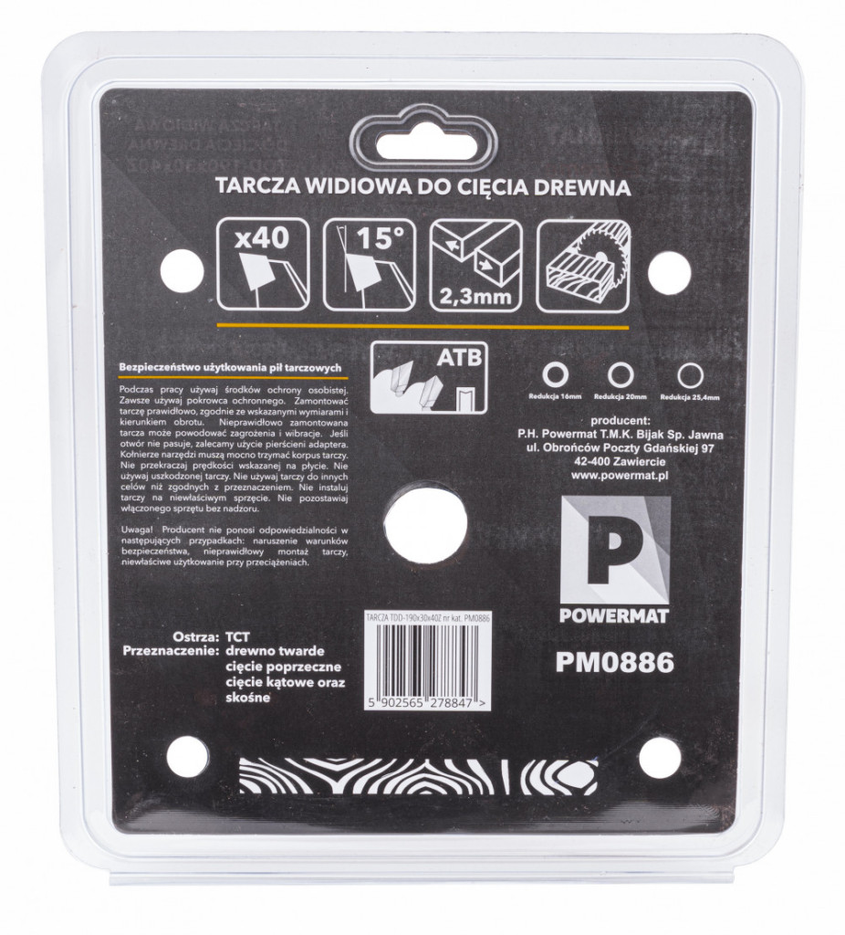 Pânză ferăstrău circular Powermat 190x30 mm, 40 dinți TCT pentru lemn