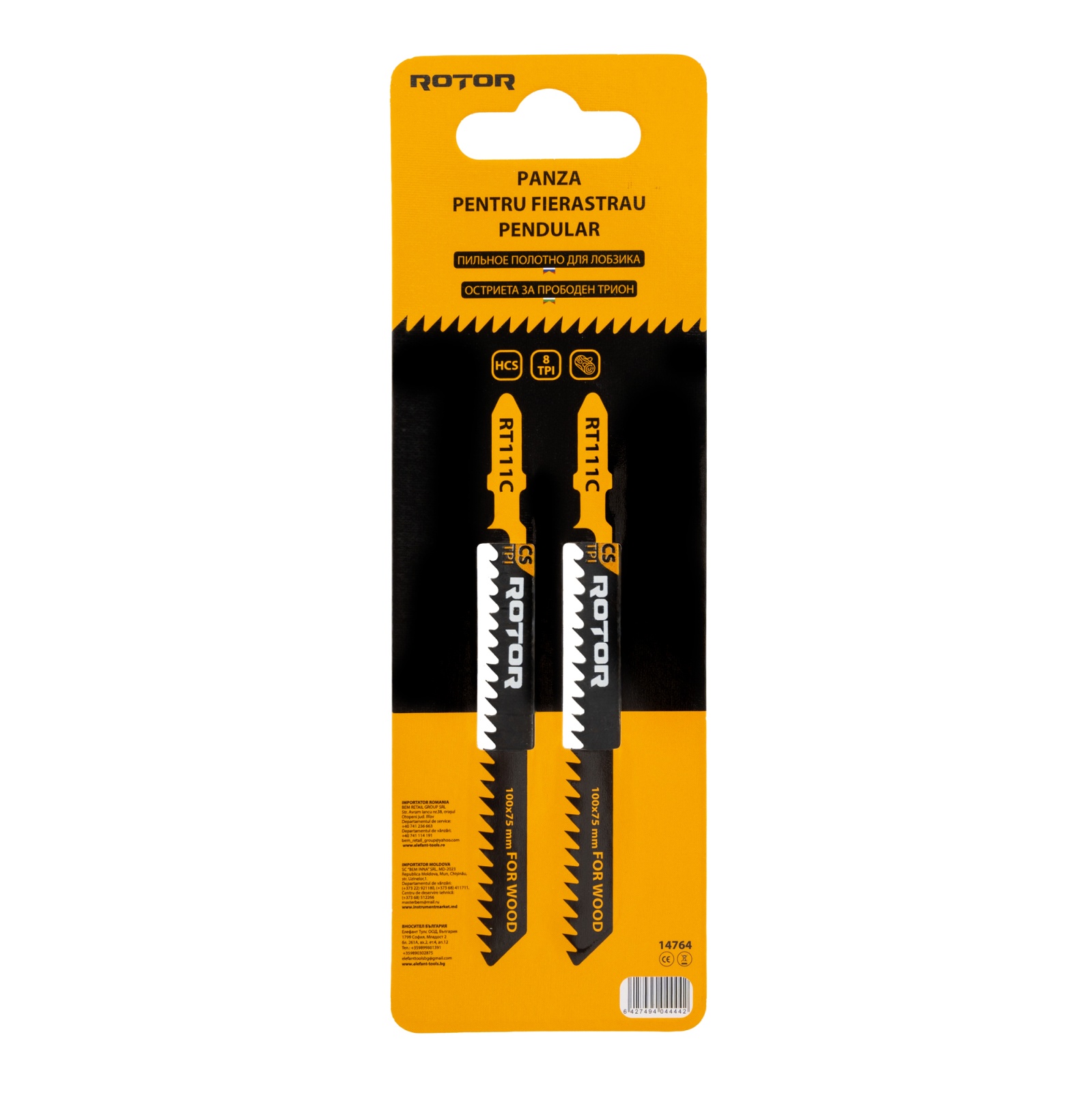 RT111C Set 2 buc Panza fierastrau pendular pentru lemn, 100x75 mm ROTOR Setul RT111C include 2 panze de fierastrau pendular special concepute pentru taierea lemnului, asigurand precizie si eficienta. Fabricate din otel de inalta calitate, aceste panze sunt durabile si potrivite pentru diverse aplicatii in tamplarie, bricolaj si proiecte de constructie. Cu o lungime de 100 mm si o inaltime de 75 mm, permit realizarea de taieturi rapide si curate. Designul acestora ofera stabilitate si o taiere uniforma, fiind compatibile cu majoritatea fierastraielor pendulare de pe piata. Detalii tehnice: Dimensiuni: 100x75 mm Material: otel rezistent pentru lemn Utilizare: taiere lemn Compatibilitate: fierastraie pendulare standard Set: 2 bucati