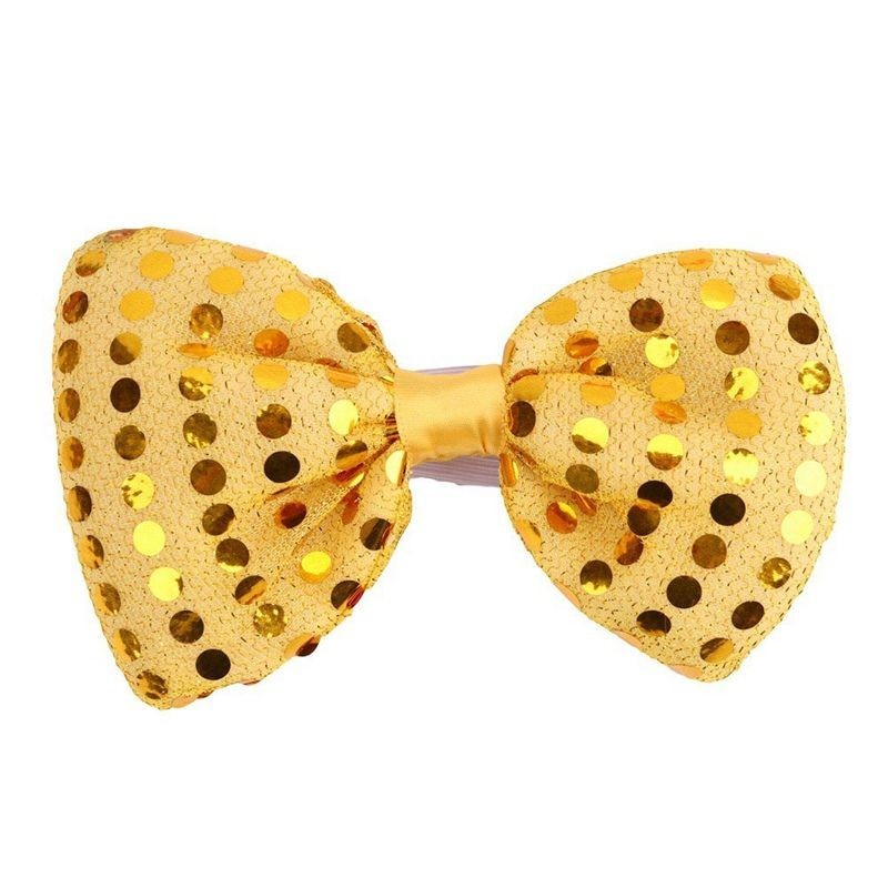 Papion luminos led rgb, accesoriu party, cu paiete, 3 moduri iluminare, material textil culoare galben MultiMark GlobalProd