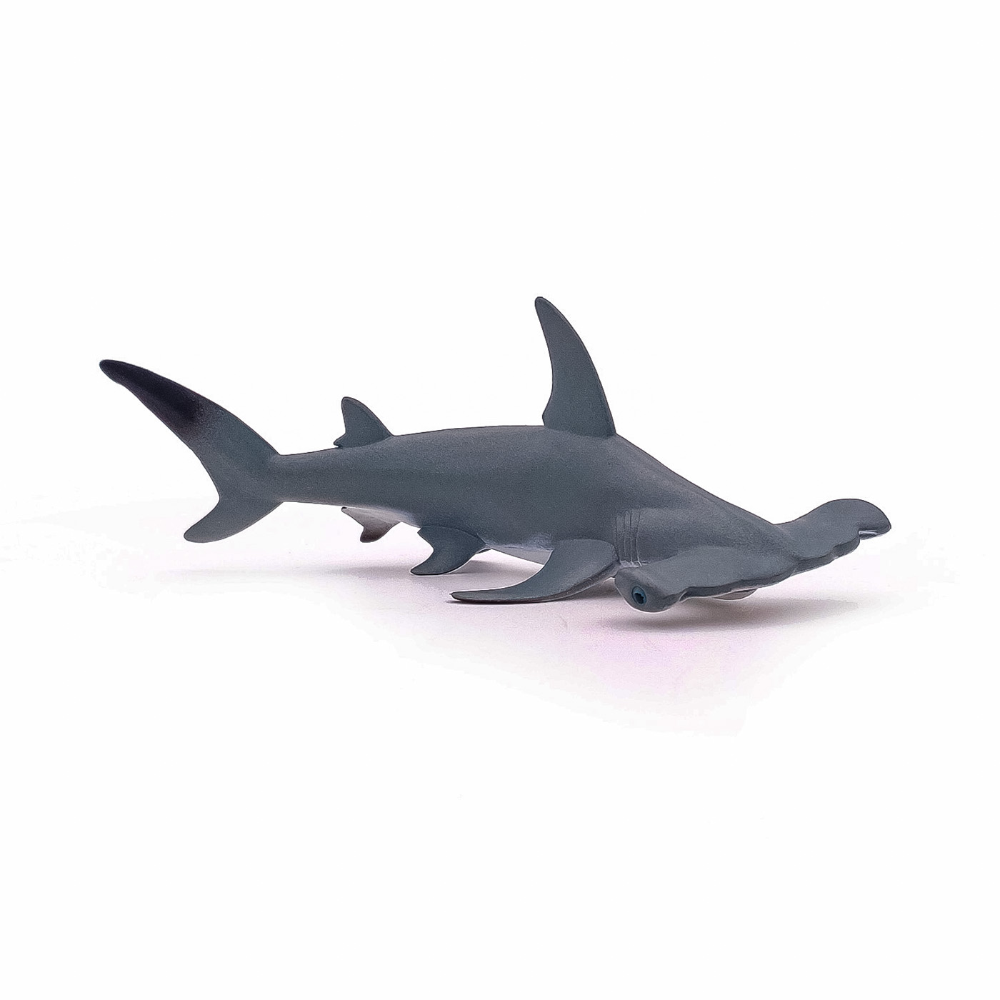 Scufundati-va cu balenele cu cocoasa, sariti in valuri alaturi de delfini sau deveniti un om-broasca capabil sa exploreze adancurile oceanului in cautarea unor exemplare magnifice precum pestele clovn. Rechinul-ciocan este o specie de peste usor de recunoscut, cu proeminente mari plate pe cap si cu ochii in lateral. Forma capului imbunatateste manevrabilitatea in apropiere. Poate masura pana la 5 m lungime si cantareste pana la 150 kg. Rechinul-ciocan se gaseste in toate oceanele tropicale si in apele de coasta putin adanci. Mananca in principal calmari, caracatite si crustacee. Desi tinerii formeaza adesea grupuri, adultii sunt mai degraba solitari. Produsul are urmatoarele dimensiuni 17 x 8 x 6.3cm si este recomandat copiilor cu varsta peste 3 ani. De mai bine de 20 de ani, Papo inoveaza constant si ii face pe copii din intreaga lume sa viseze cu o gama bogata de peste 600 de produse, reprezentand 12 lumi, animale si personaje. De la modelul original la serie, fiecare dintre figurinele Papo a fost conceputa si creata in Franta pentru a fi fabricata intr-o permanenta preocupare pentru calitate. Pictate manual, atentia la detalii este acum recunoscuta. Figurinele Papo se disting prin acuratete si realism, detaliile sunt de asa natura incat am putea crede ca se vor pune in miscare.
