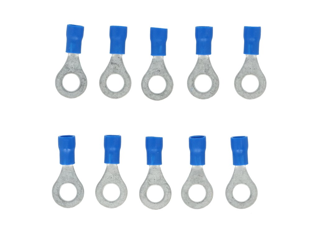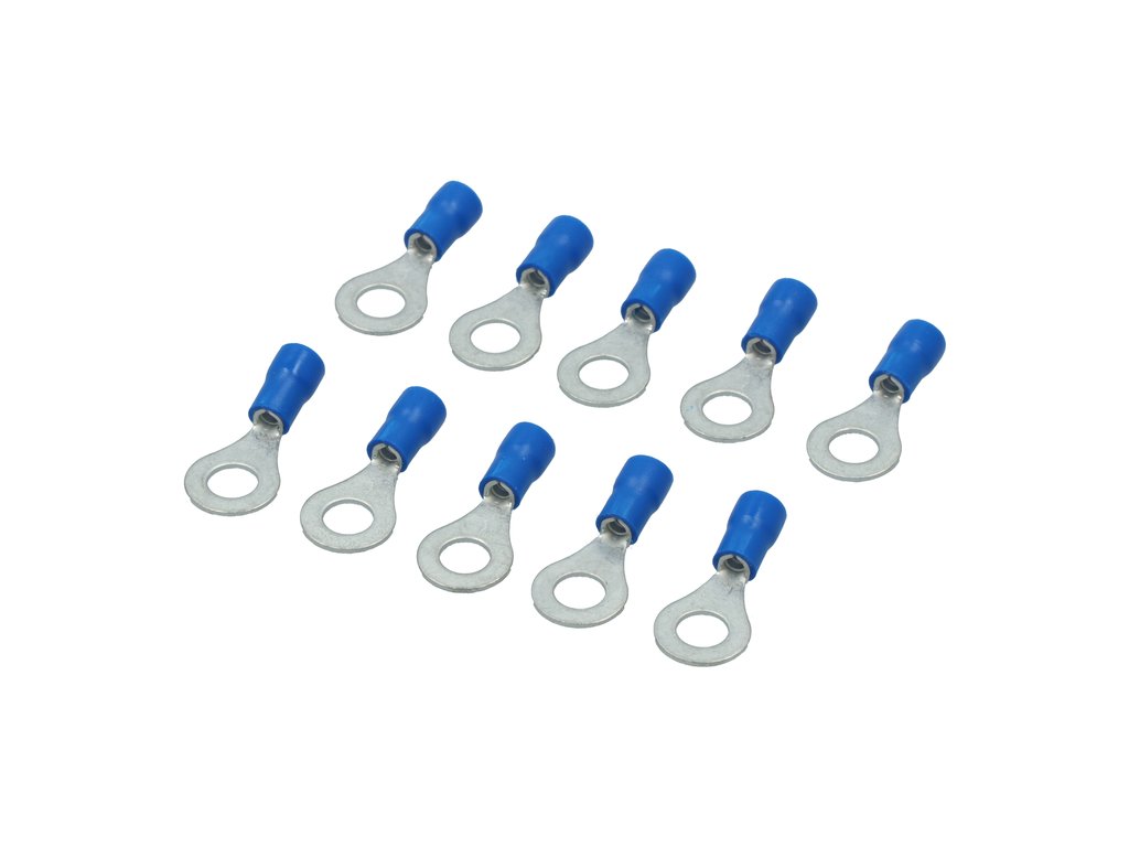 Papuci electrici izolati, albastru cu Inel, terminale pe cablu, 6,4 mm, lungime 26,00 mm, crimpat, 560, 10 terminale la blister Carpoint
