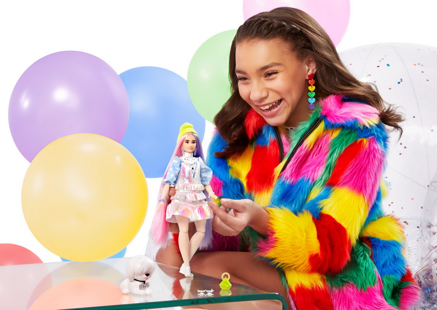 Păpușa Barbie Extra este alegerea perfectă pentru copiii care iubesc moda, culorile vibrante și jocurile de rol creative. Acest model impresionează prin părul lung în nuanțe de mov și roz, ținuta strălucitoare, căciula beanie verde fosforescent și accesoriile cu stil aparte. În plus, vine însoțită de un cățel alb adorabil, gata să completeze universul de joacă.