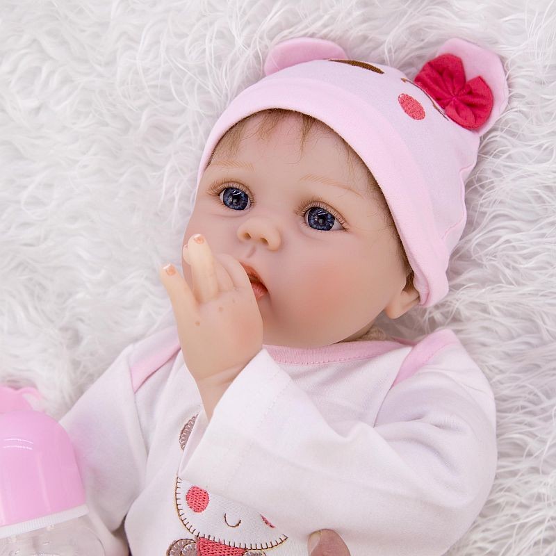 Papusa are un aspect realist, setul include hainute, caciula si accesorii necesare unui bebelus: un biberon, o suzeta magnetica, scutec, certificat de nastere si paturica.