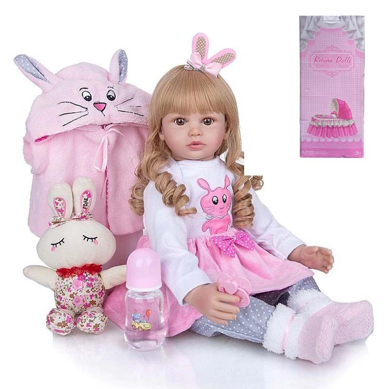 Papusa bebelus, inaltime 55 cm, aspect realist, jucarie iepuras, biberon, suzeta, 3 ani+ MultiMark GlobalProd