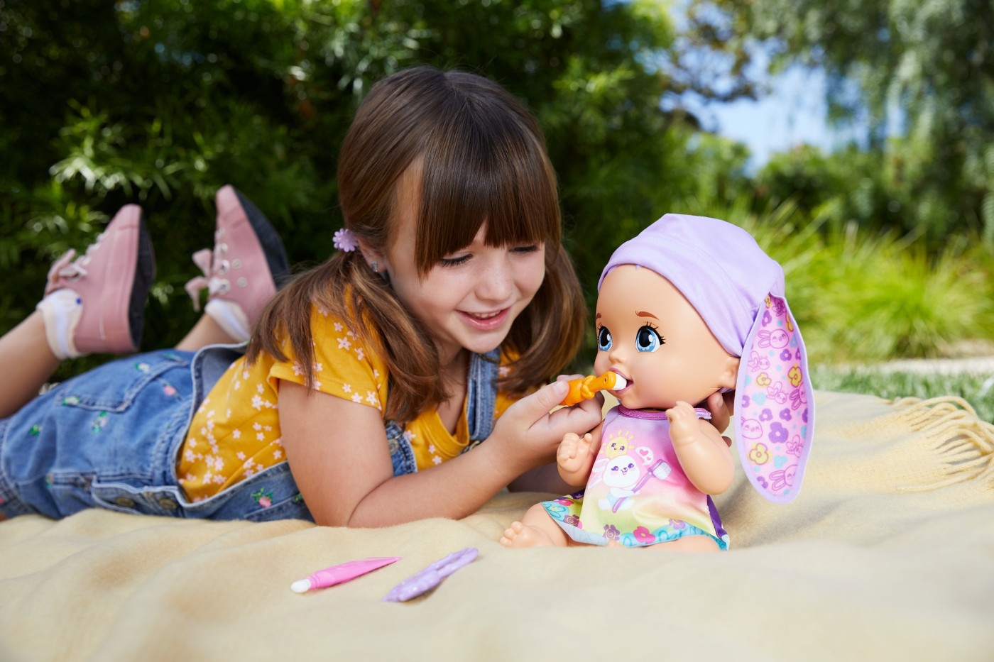 Papusa bebelus My Garden Baby Iepuras transforma joaca de zi cu zi intr-o experienta plina de tandrete si imaginatie. Cu urechi moi, parfum floral delicat si accesorii pentru ingrijire, aceasta papusa interactiva ii incurajeaza pe cei mici sa descopere rutina bebelusului prin joc. Cand dintisorii sunt periati cu periuta inclusa, capul papusii se misca dintr-o parte in alta pentru un efect adorabil si realist.