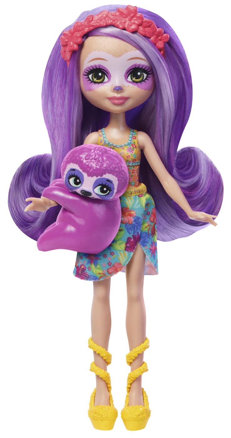 Alege papusa Enchantimals Sabindra Sloth cu animalut pentru un joc plin de culoare, prietenie si momente creative in fiecare zi.