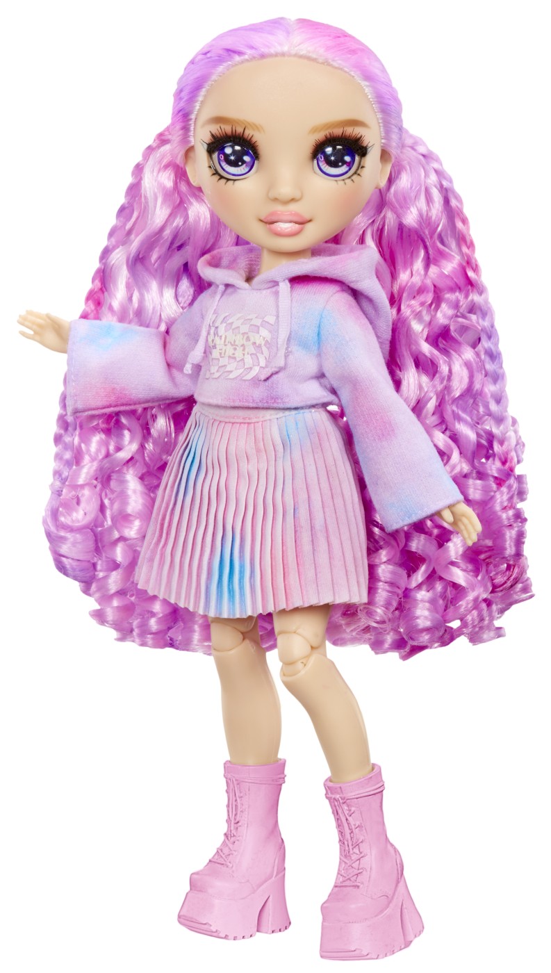 Papusa Rainbow High Watercolor Create cu ochi mov si acuarele lavabile