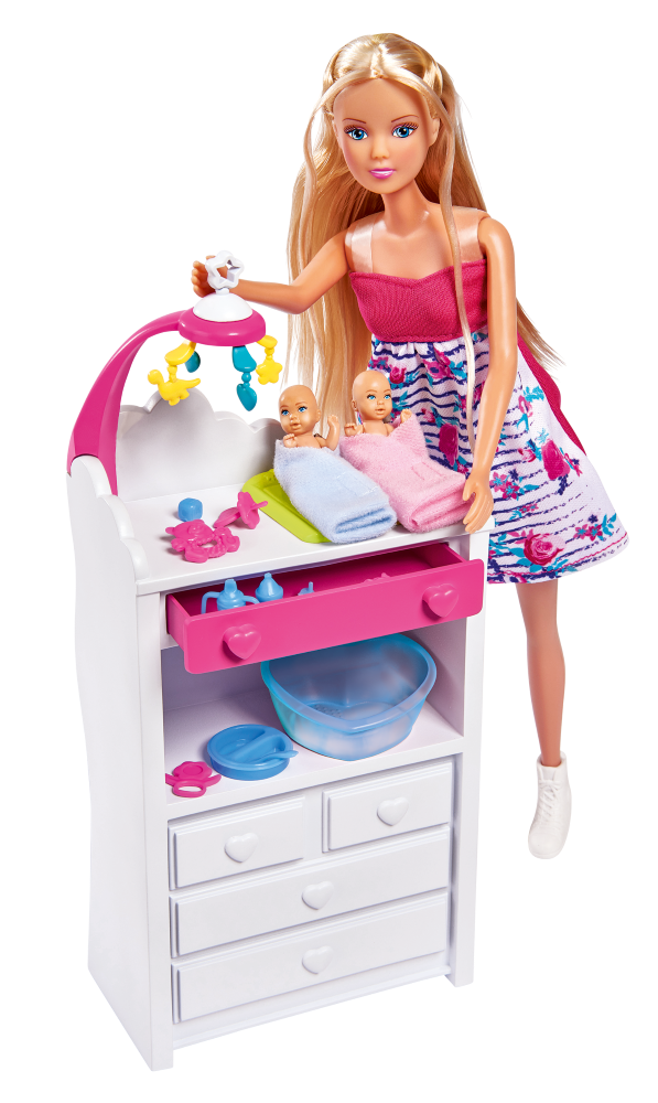 Papusa Steffi cu gemeni si accesorii, masuta de schimbat, 29 cm